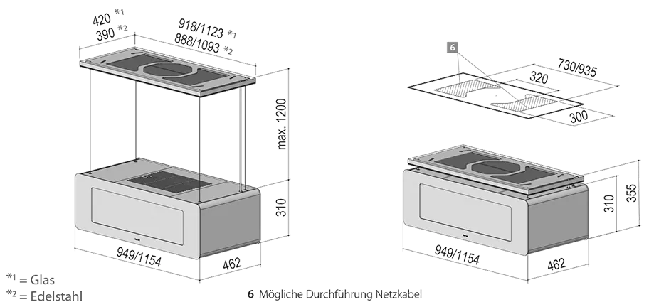- 1.200 mm Liftfunktion: für Kopffreiheit und den optimalen Abstand zum Kochfeld