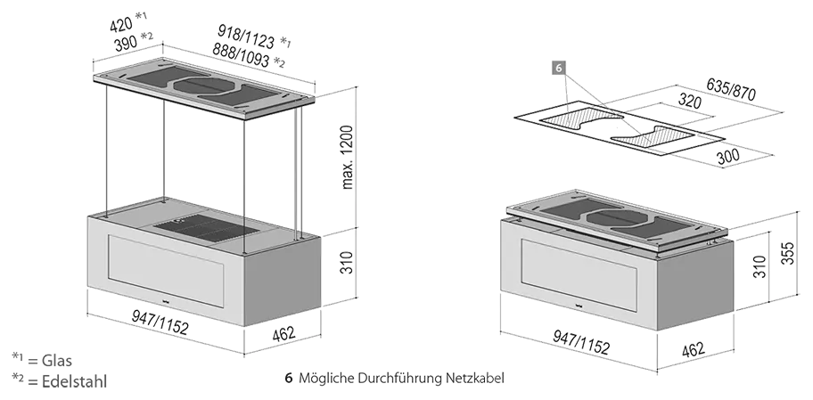 - 1.200 mm Liftfunktion: für Kopffreiheit und den optimalen Abstand zum Kochfeld