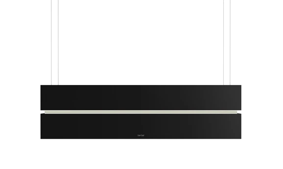 Floating elegance characterizes the freely suspended island hoods Skyline from berbel. At the push of a button, they gently glide down from the ceiling towards the cooking surface, unfolding their full berbel power at the optimal distance from the stove: for clean air and a clear mind. As a functional light fixture with excellent design, they make a striking impression in modern kitchens.