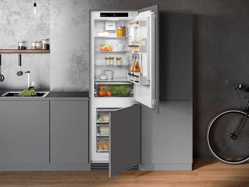 - Built-In Refrigerator: The built-in refrigerator is integrated (with a kitchen cabinet door) or decorable (with a front panel) and built into the kitchen unit.