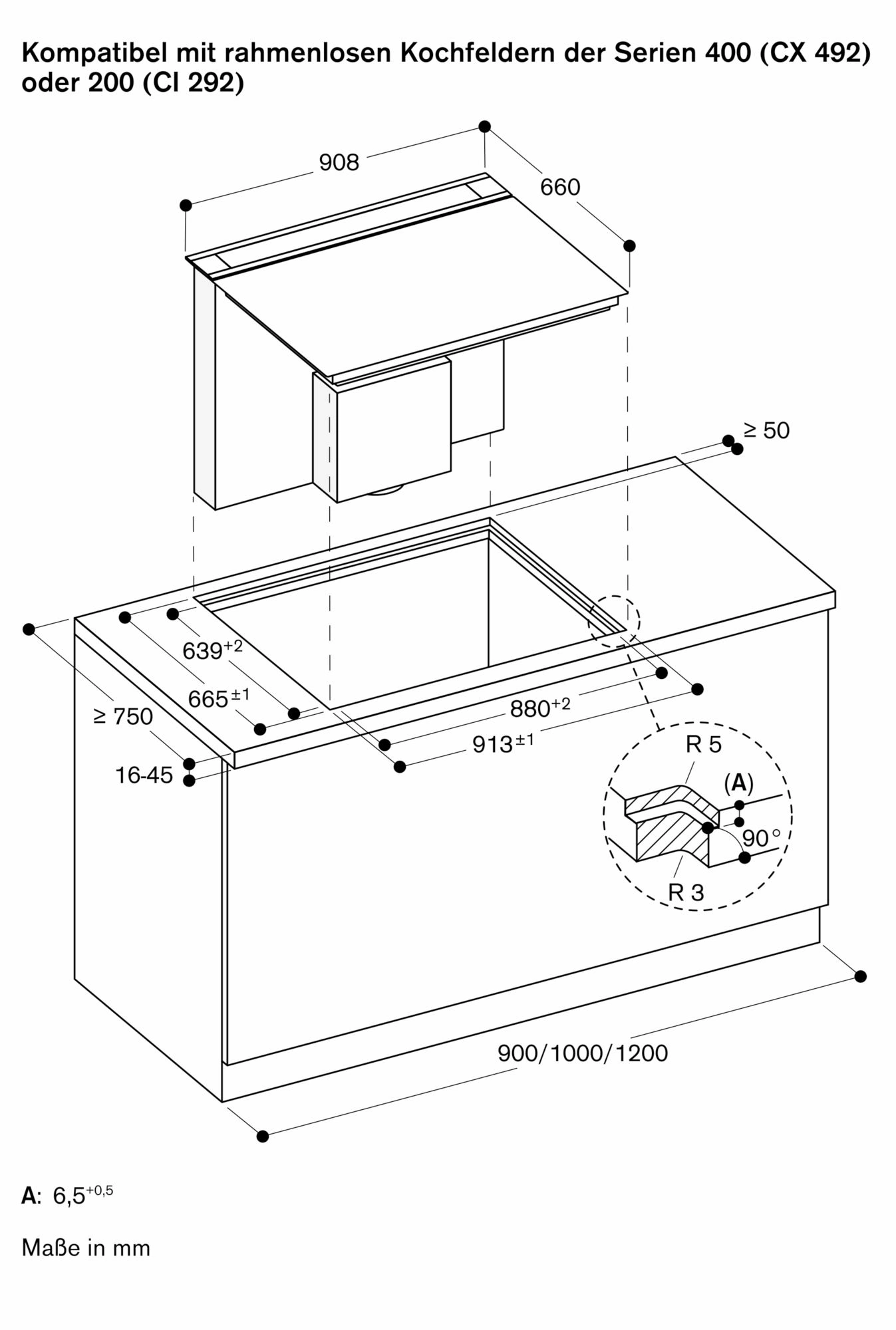 Die Gaggenau AL200190 ausfahrbare Tischlüftung in Schwarz mit transparentem Lüftungspaneel aus Glas ist ein eleganter Dunstabzug am Kochfeld, der bei Nichtgebrauch komplett in die Arbeitsplatte versenkbar ist. Sie lässt sich ideal mit einem 90 cm Kochfeld verbinden. Für schöne Lichteffekte in der Küche sorgt die weiße Ambientbeleuchtung an den Glaskanten. Über die Home Connect App kann die Farbe am Tischlüfter aus der Serie 200 auch individuell eingestellt werden.