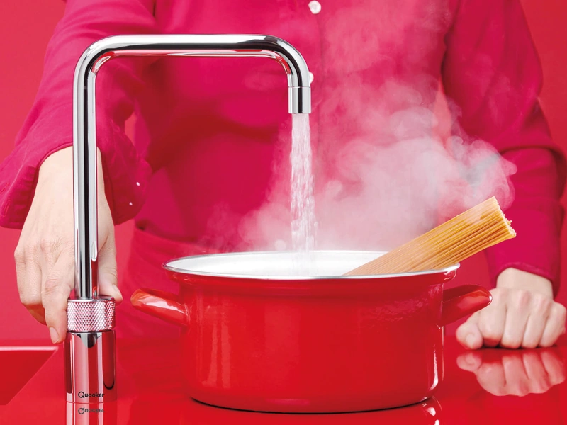 Cold, hot, and sparkling water directly from the tap – this innovation provides more flexibility and fewer devices in the kitchen. Quooker faucets are pioneers in this innovation.