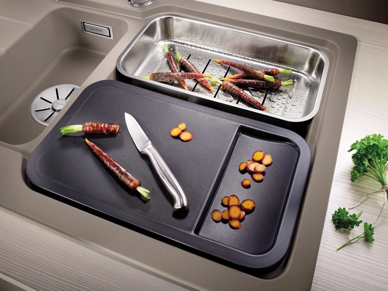 - Cutting Boards: Sink cutting boards can be placed on the outer edge of the sink to provide an extra work surface.