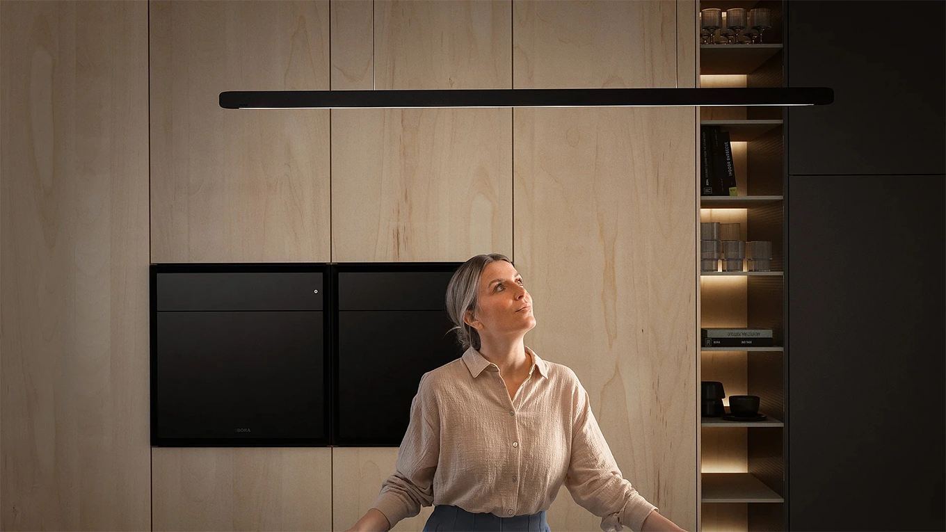 In autumn, the days become darker again. That's why we need more light in the kitchen. This is the best time to update your kitchen lighting. Bring the latest lighting trends into your kitchen. For example, with the BORA Horizon pendant light or the modern Novy Lights, which are particularly smart and can be controlled with gestures alone.