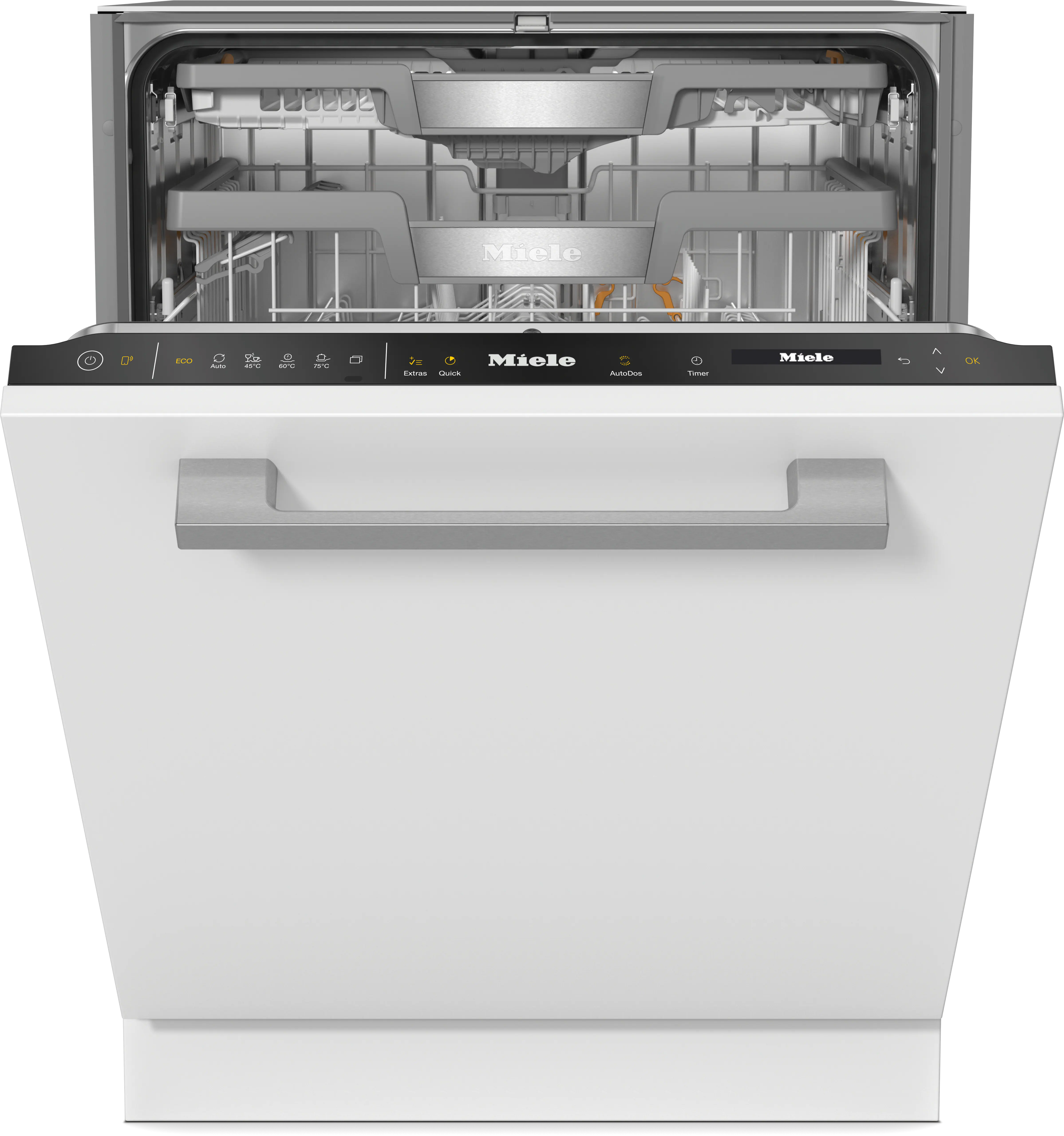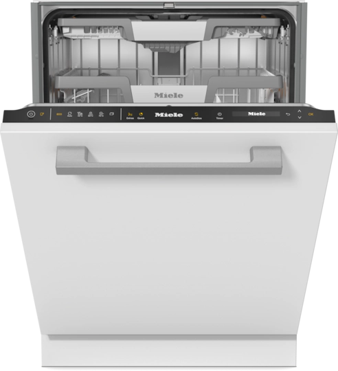 Miele AutoDos dishwashers are available as semi-integrated or fully integrated dishwashers. Semi-integrated dishwashers have the display on the front. Fully integrated dishwashers are discreetly concealed.