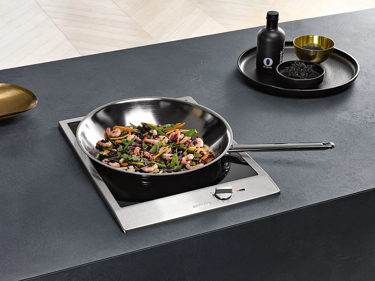 Miele CSWP 1450 ist eine passende Wok-Pfanne für den Miele SmartLine Induktionswok. Er ist unbeschichtet und größer als herkömmliche Wokpfannen auf dem Markt.
