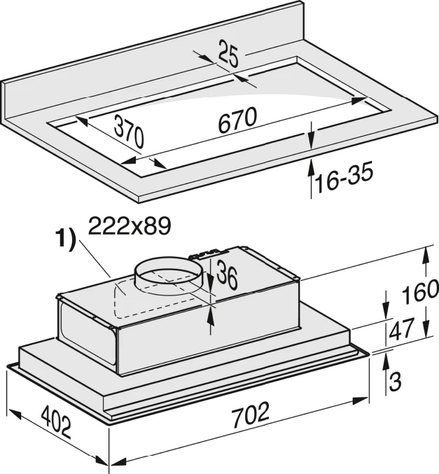 Miele DA 2578 EXTA Lüfterbaustein für externes Gebläse in 702 mm Edelstahl