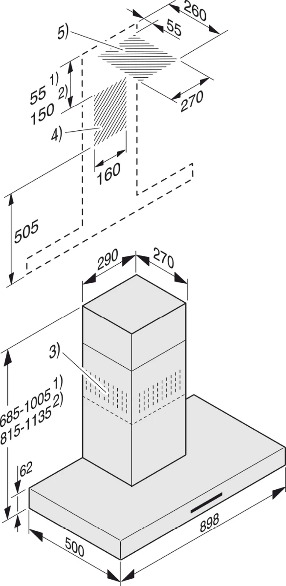 - Zeitloses Design – Edelstahl-Haubenschirm in 898 mm Breite