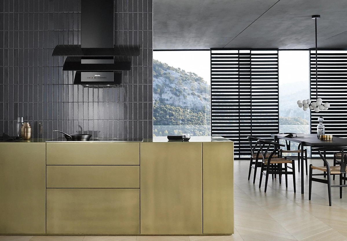 Miele DA 7198 W Triple Black ist eine einzigartige Wand-Dunstabzugshaube in der Farbe Obsidianschwarz. Sie besitzt drei gewölbte Gläser in 880 mm Breite und ist sehr energieeffizient. Zudem lässt sich die Design Wandhaube smart steuern und via Con@ctivity mit dem Kochfeld verbinden.