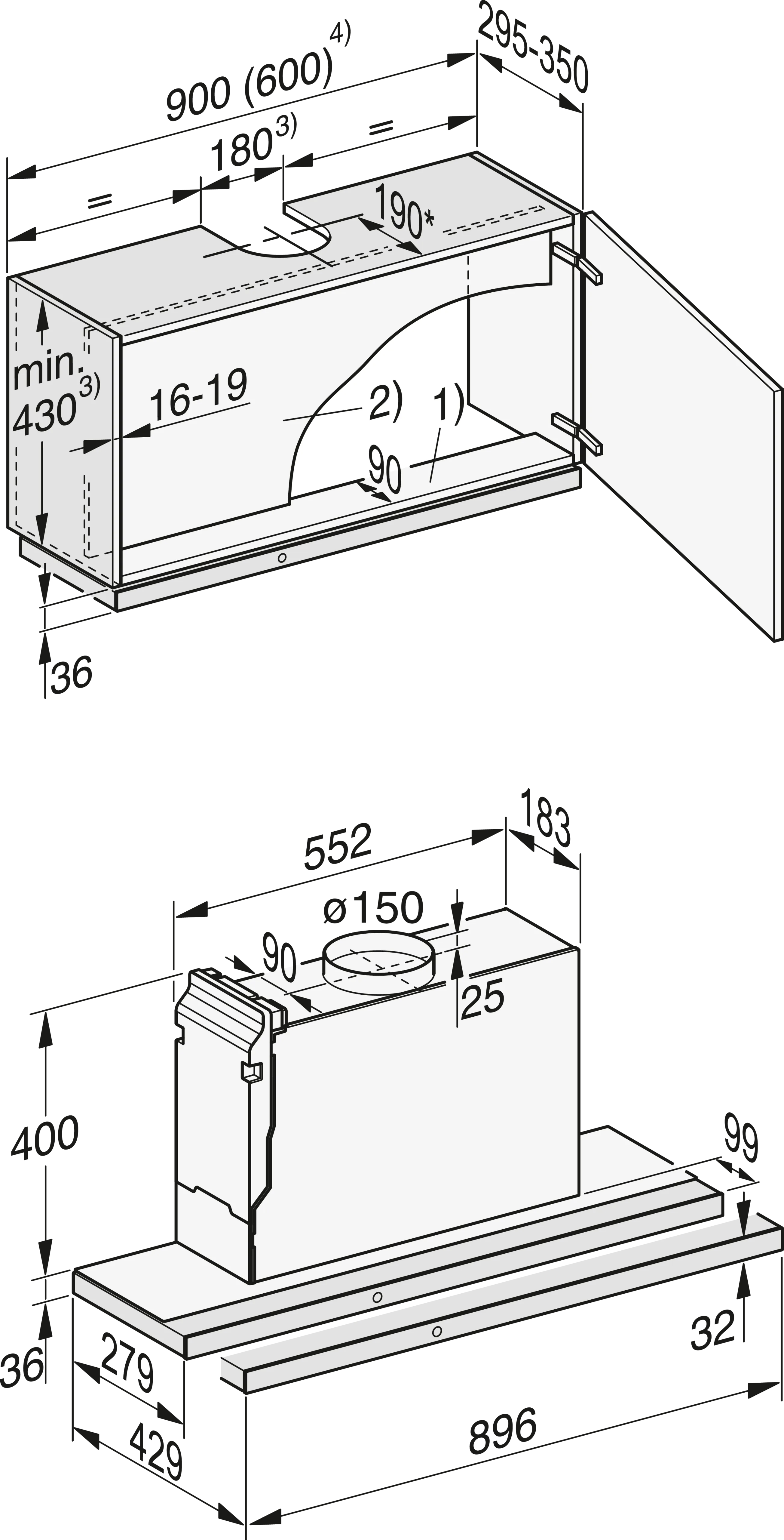 - Elegantes Design - obsidianschwarze Bedienblende in 90 cm Breite