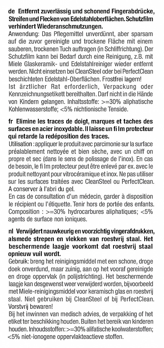 Miele Edelstahlpflege SteelCare für mattglänzende Edelstahl-Oberflächen