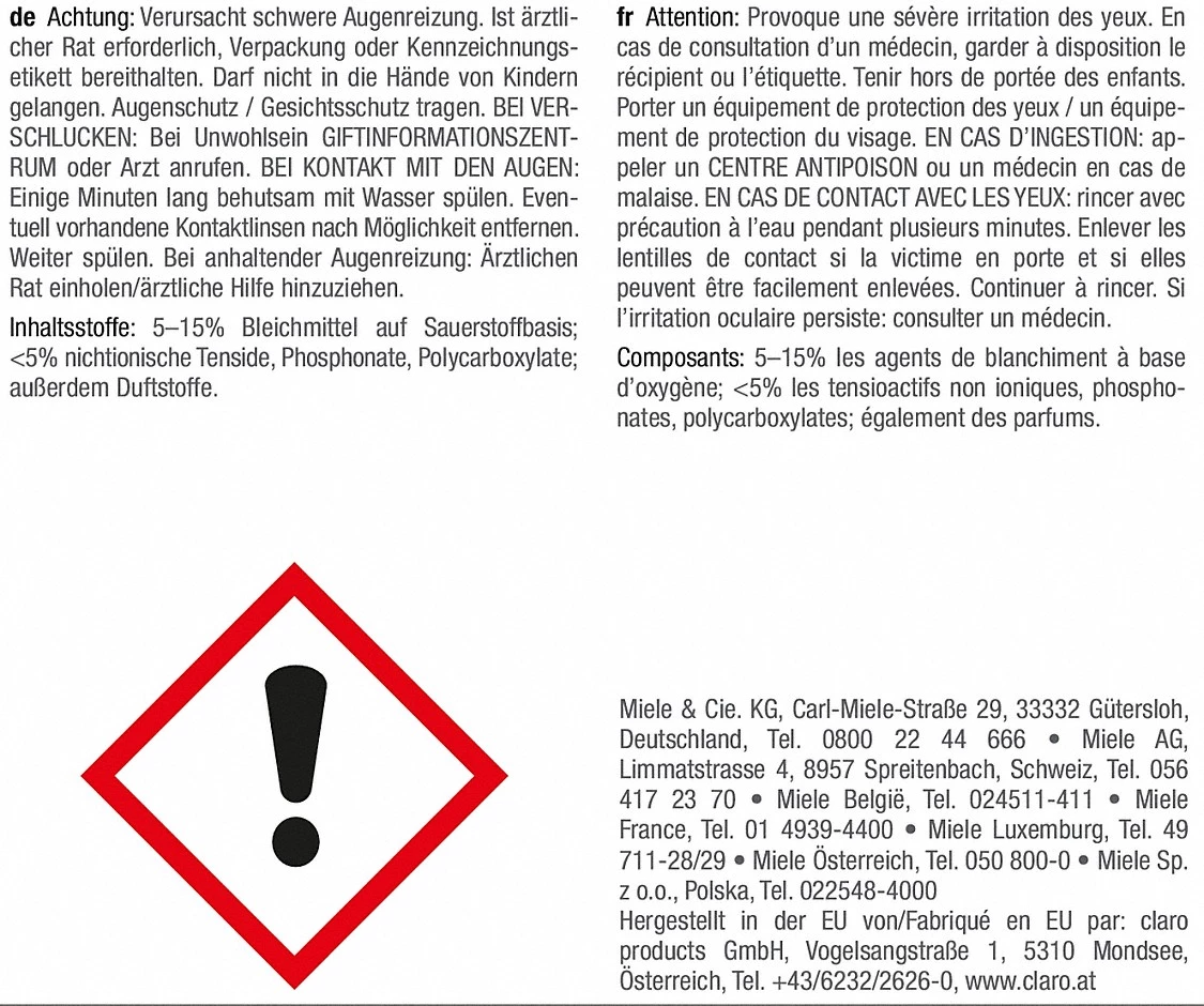 - Effektive Grundreinigung — Spezielle Miele Formulierung