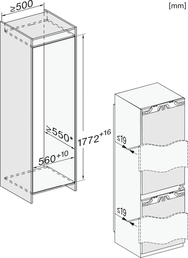 Miele KFN 7744 E ist eine Einbau-Kühlkombination mit zwei Türen für die Integration in den Küchenschrank. Der Kühlschrank mit 3 Ablageflächen, 1 Flaschenablage, 2 Frischeschubladen und 2 Türabstellern befindet sich oben, der Gefrierschrank mit 3 Gefrierschubladen unten. Die Kühl-Gefrierkombination verfügt über insgesamt 244 Liter Volumen und Funktionen wie NoFrost für nie wieder Abtauen, PerfectFresh Pro-Schubladen für längere Frische und DynaCool für eine gleichmäßige Temperaturverteilung durch einen Ventilator. Zudem ist die Kühlschrank-Gefrierschrank-Kombination smart vernetzbar mit Miele@home.