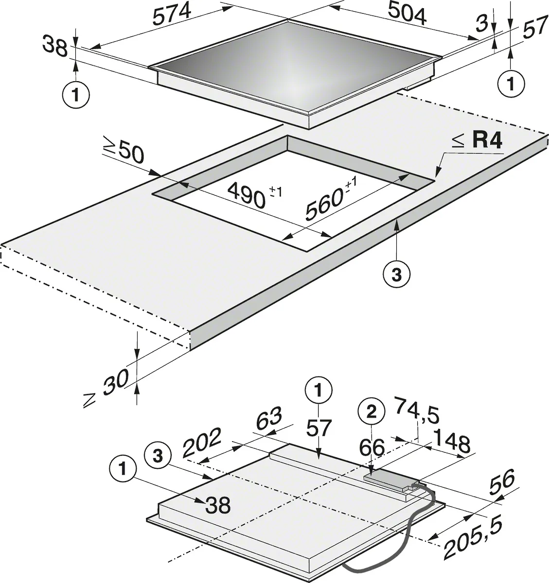 Miele KM 520 ist ein autarkes (herdunabhängiges) Elektrokochfeld aus schwarzer Glaskeramik. Es verfügt über 4 Kochzonen in unterschiedlichen Größen. Das Miele Kochfeld in 574 mm wird mit einem aufliegenden Edelstahlrahmen in die Arbeitsplatte eingebaut. Die Bedienung erfolgt über Bedienknebel an der Seite.