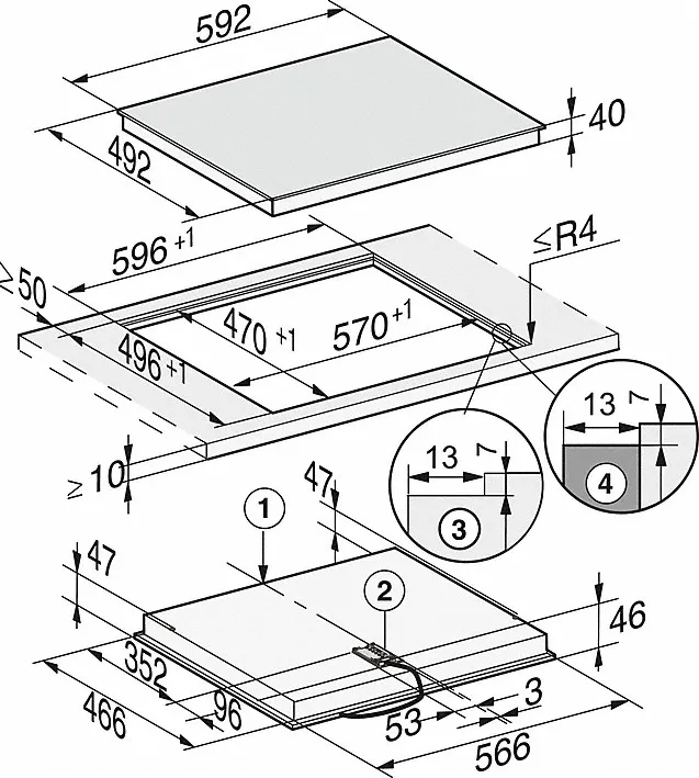 - Modernes Design - 592 mm breit für den flächenbündigen Einbau