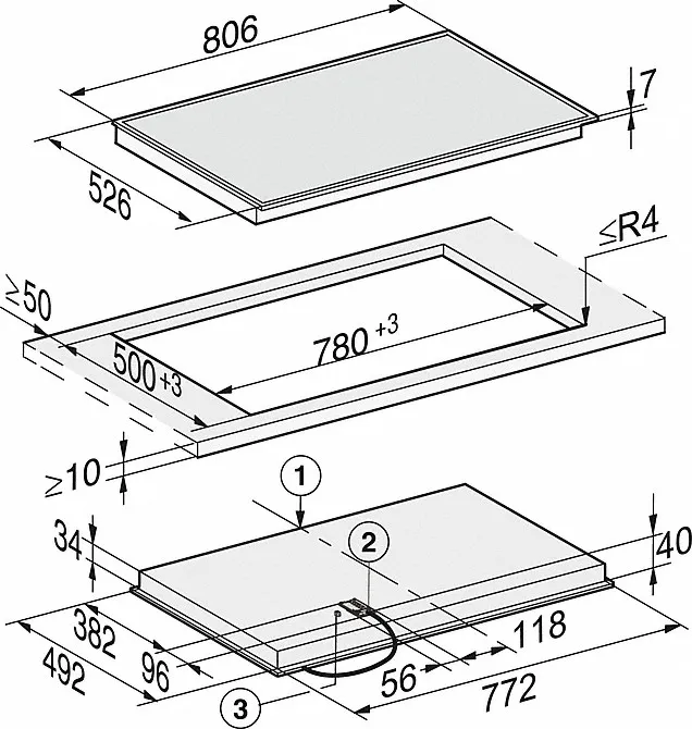 Miele KM 6564 FR Autarkes Elektrokochfeld mit Bräterzone & Edelstahlrahmen in 806 mm