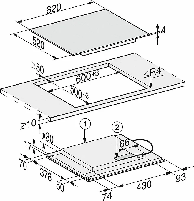 - In 620 mm Breite für flächenbündigen oder aufliegenden Einbau