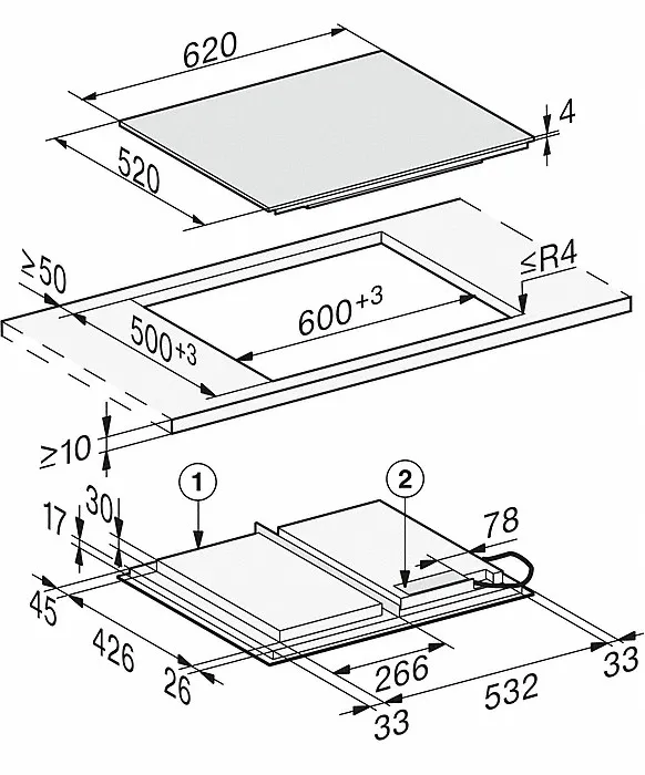 - Rahmenlos für flächenbündigen oder aufliegenden Einbau