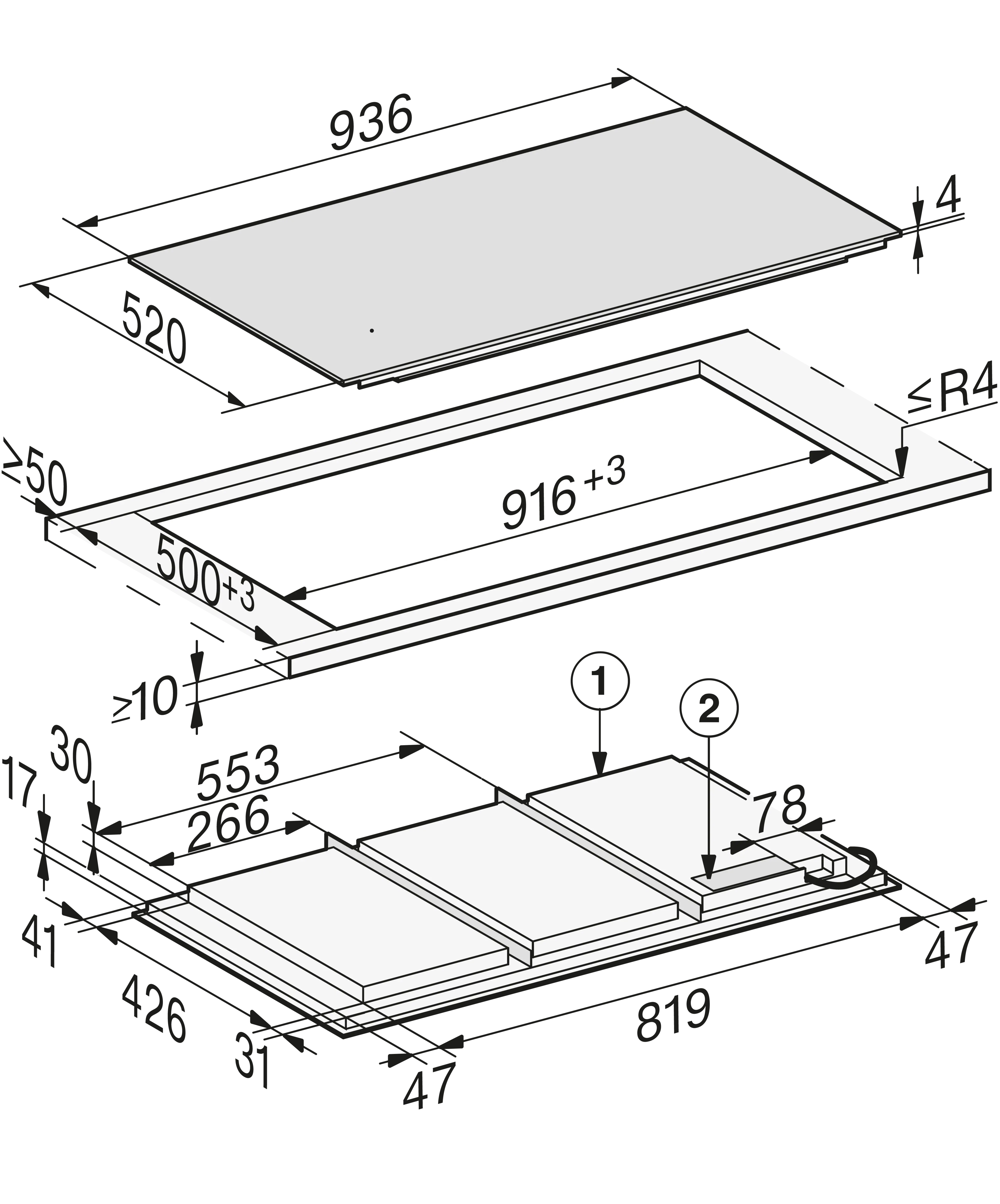 - Rahmenlos für flächenbündigen oder aufliegenden Einbau
