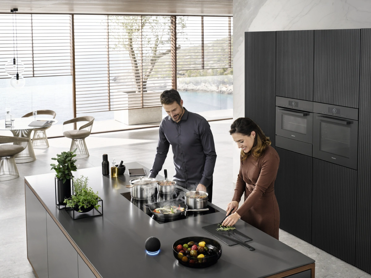 Das Miele KMDA 7272 FR-A Induktionskochfeld mit integriertem Dunstabzug ist die perfekte 2-in-1 Lösung für die Küche. Ein Kochfeld mit Induktion, das einen praktischen Abluft Dunstabzug in der Mitte zwischen zwei Flex-Induktion-Kochzonen integriert hat. Das TwoInOne Kochfeld wird rahmenlos in die Arbeitsplatte eingebaut und über ComfortSelect Plus bedient - eine zentrale Zahlenreihe in gelber Anzeige. Zudem lässt sich der Kochfeldabzug mit Con@ctivity automatisch und smart steuern.