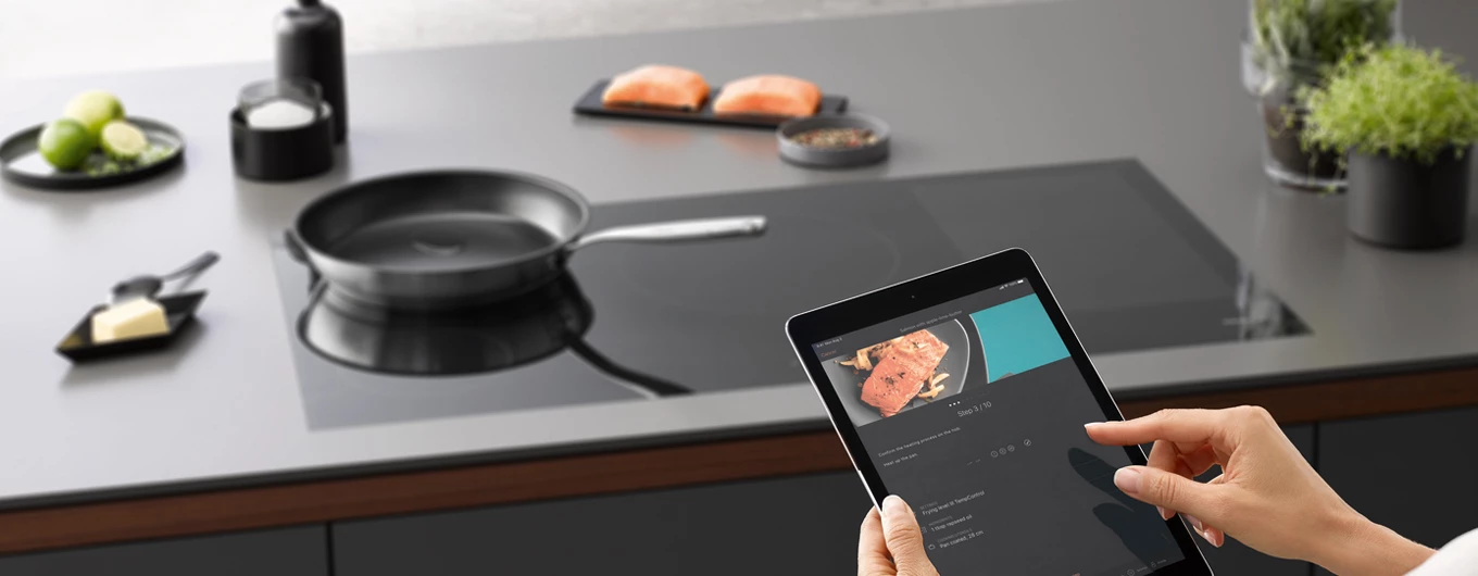 Personalized kitchen design: Thanks to the uniform depth, our Miele cooktops blend seamlessly with the elegant Miele SmartLine elements. A variety of combination options allow you to create a kitchen design tailored to your personal taste. The 60 cm Miele induction cooktops are also easily compatible with the Miele downdraft ventilator CSDA 7000 – where intelligent technology meets elegant design.