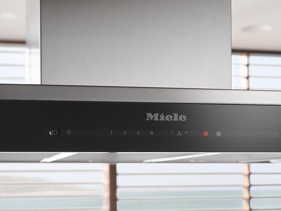When the grease or activated carbon filter in your Miele hood is saturated, it will be indicated by a red LED light. This means that the filter should be cleaned or replaced as soon as possible. You can customize the preset usage duration of the filters: the grease filter cleaning indicator can be programmed for 20, 30, 40, or 50 hours, while the activated carbon filter replacement indicator can be set for 120, 180, or 240 hours.