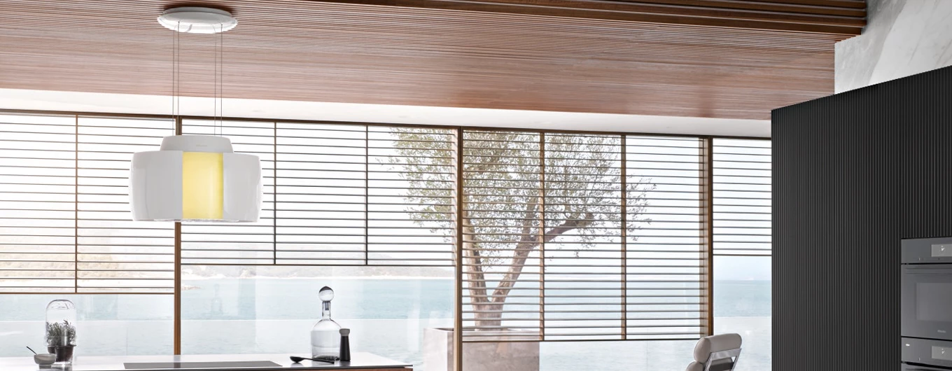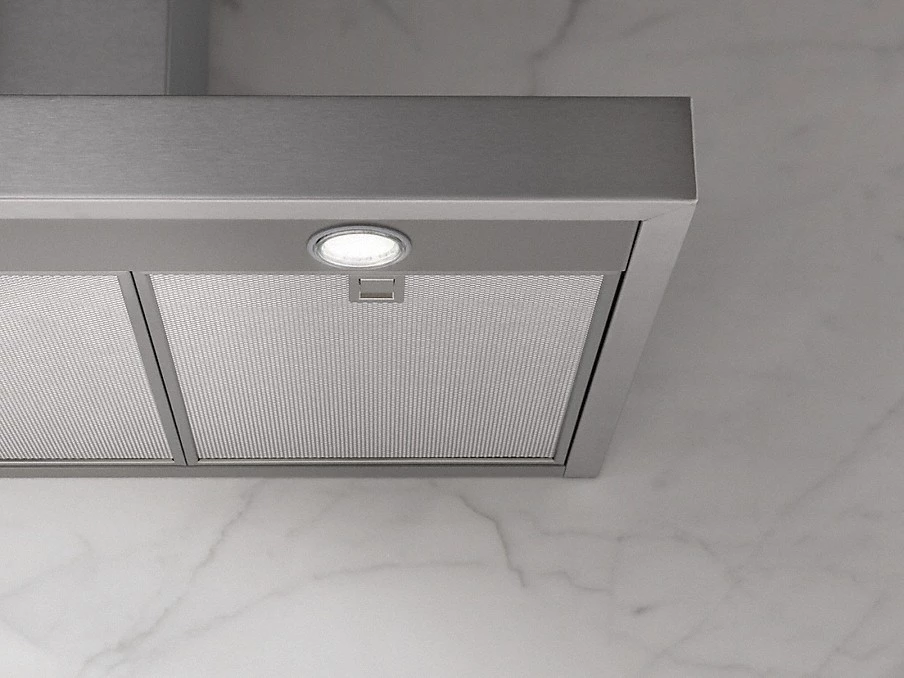 In hoods with edge extraction, the technically appealing metal grease filters are hidden behind a decorative cover. Cooking vapors are drawn in at the outer edges, and in hoods with multi-zone edge extraction, also from the central area of the hoods.