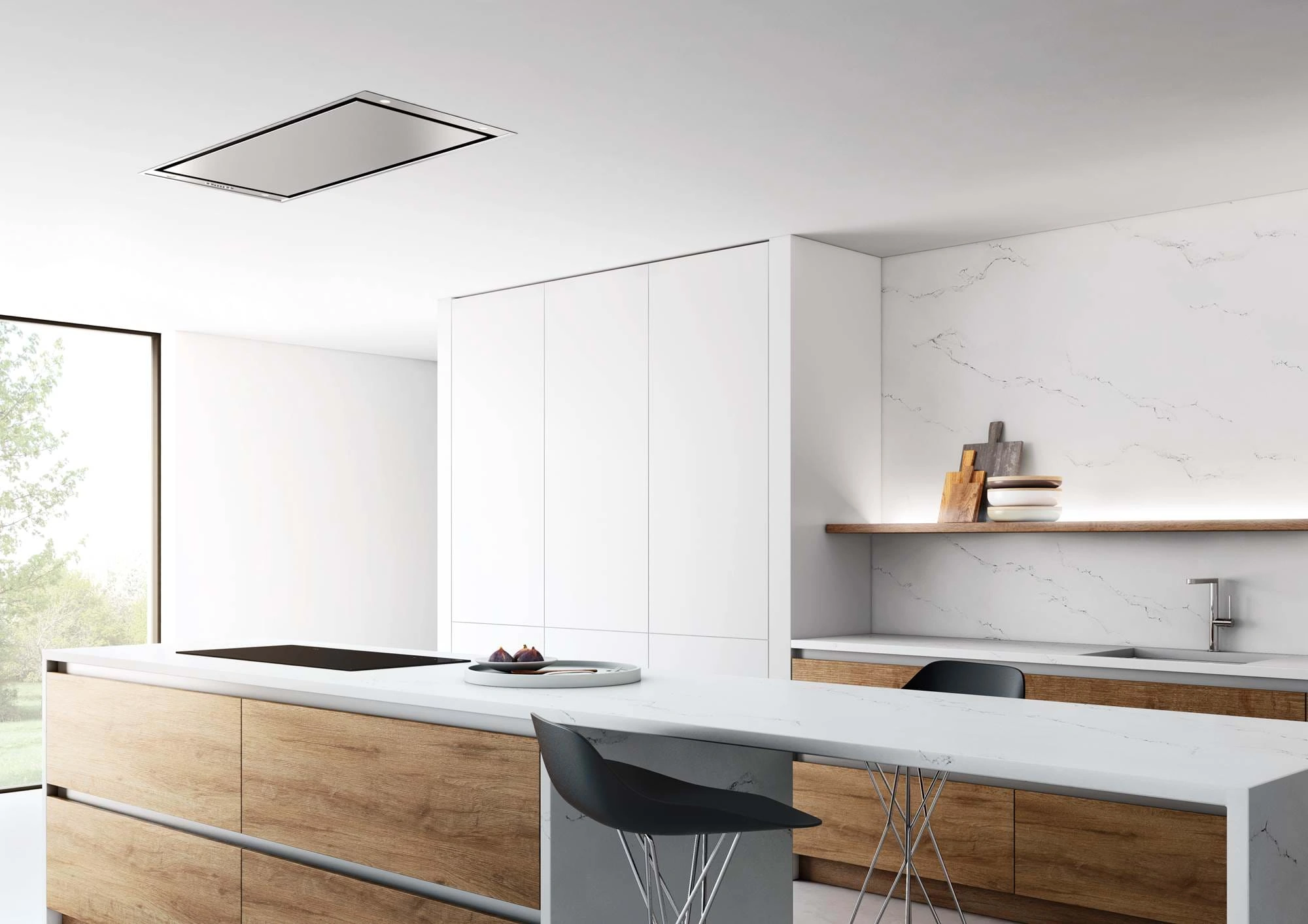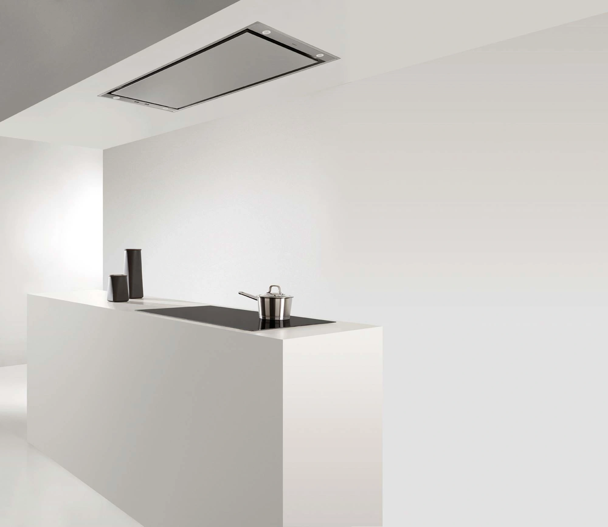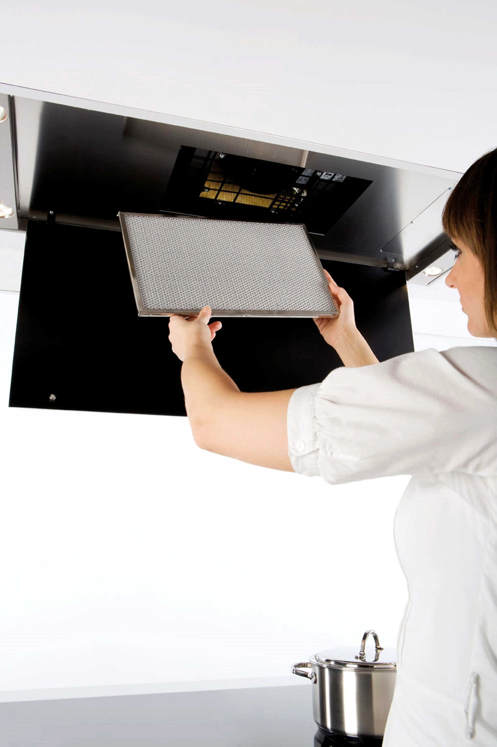 Die Novy Pureline 6830 ist eine Deckenhaube in 90 cm Edelstahl. Sie besitzt einen Cubic Motor, der drehbar und abnehmbar ist und dadurch flexible Installationsmöglichkeiten ermöglicht, z.B. extern im Gebäude. Ein Highlight der Dunstabzugshaube ist auch die integrierte dimmbare LED-Beleuchtung, die sich von warmweiß auf neutralweiß einstellen lässt. Bedient wird die Novy Abzugshaube über Tasten oder Fernsteuerung.