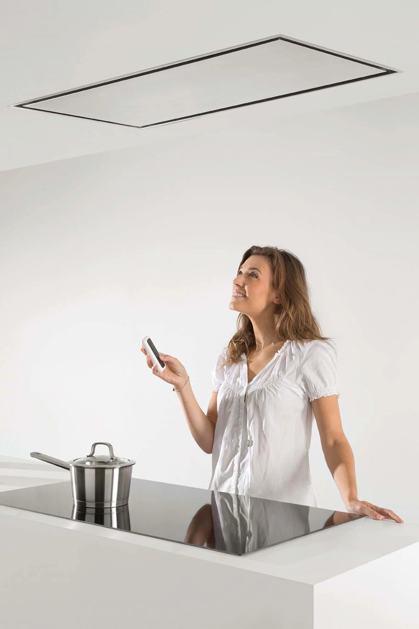 Die Novy Pureline 6838 ist eine Deckenhaube in 90 cm Edelstahl ohne Motor. Es handelt sich also um eine Haube für den Betrieb mit externem Motor. Für mehr Flexibilität sorgt auch das Fehlen von Licht, sodass eine eigene Beleuchtung in der Küche geplant werden kann. Bedient wird die Novy Abzugshaube über Tasten oder Fernsteuerung.