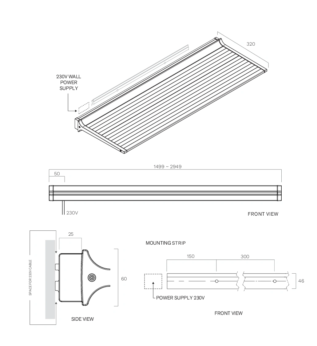 - Breite des Lichtstrahls über die gesamte Länge des Regals einstellbar