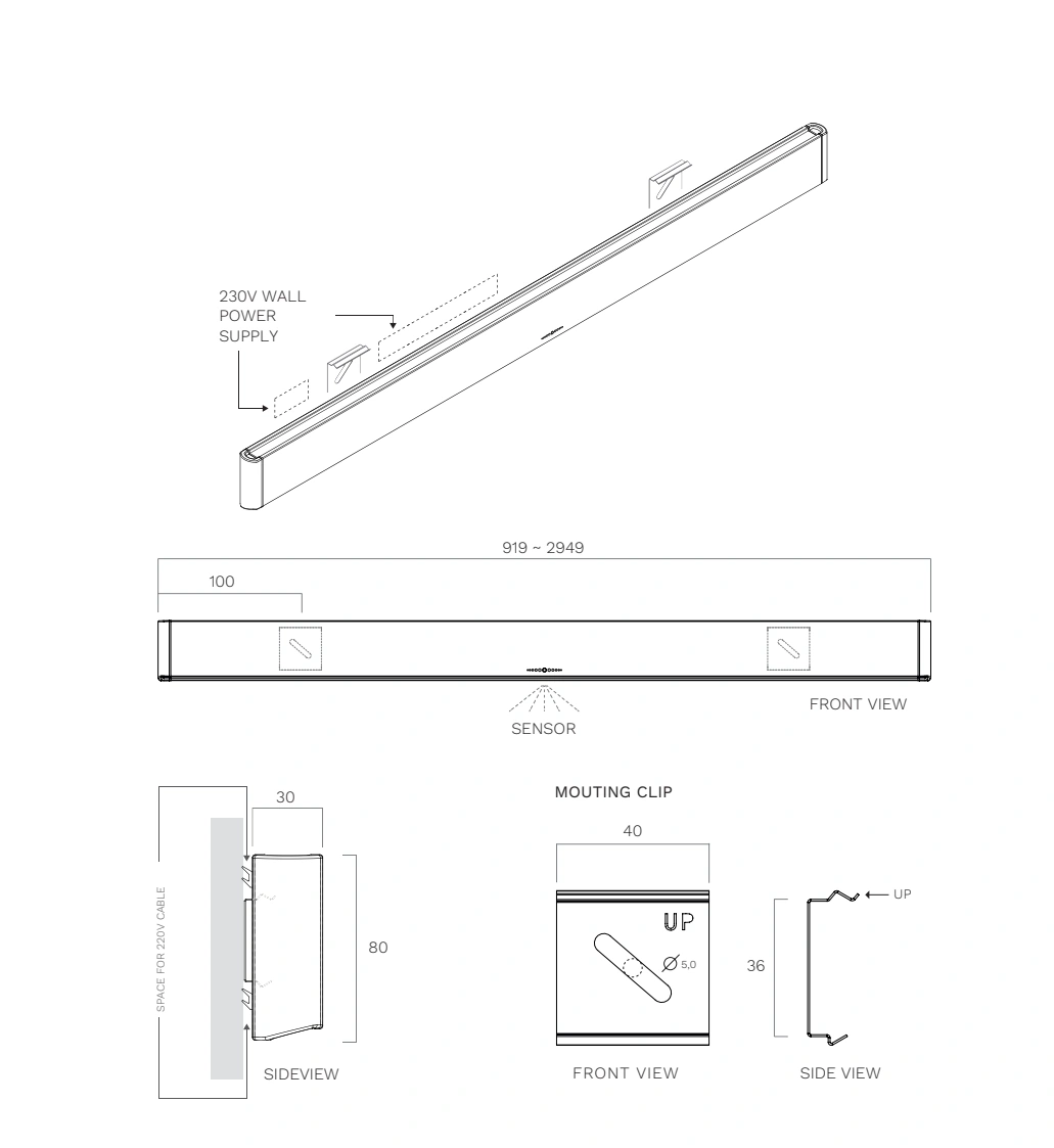 Die Novy Wall ist eine elegante schwarze Wandleuchte für die Küche. Mit ihren 120 cm leuchtet sie den Bereich über der Arbeitsfläche oder unter dem Küchenschrank perfekt aus. Was sie aber zur perfekten Küchenleuchte macht, ist ihre bequeme Gestensteuerung. Durch eine einfache Handbewegung lässt sich das LED-Licht ein- und ausstellen, dimmen und in der Farbe einstellen. Ideal, wenn man mal die Hände voll oder schmutzig hat.