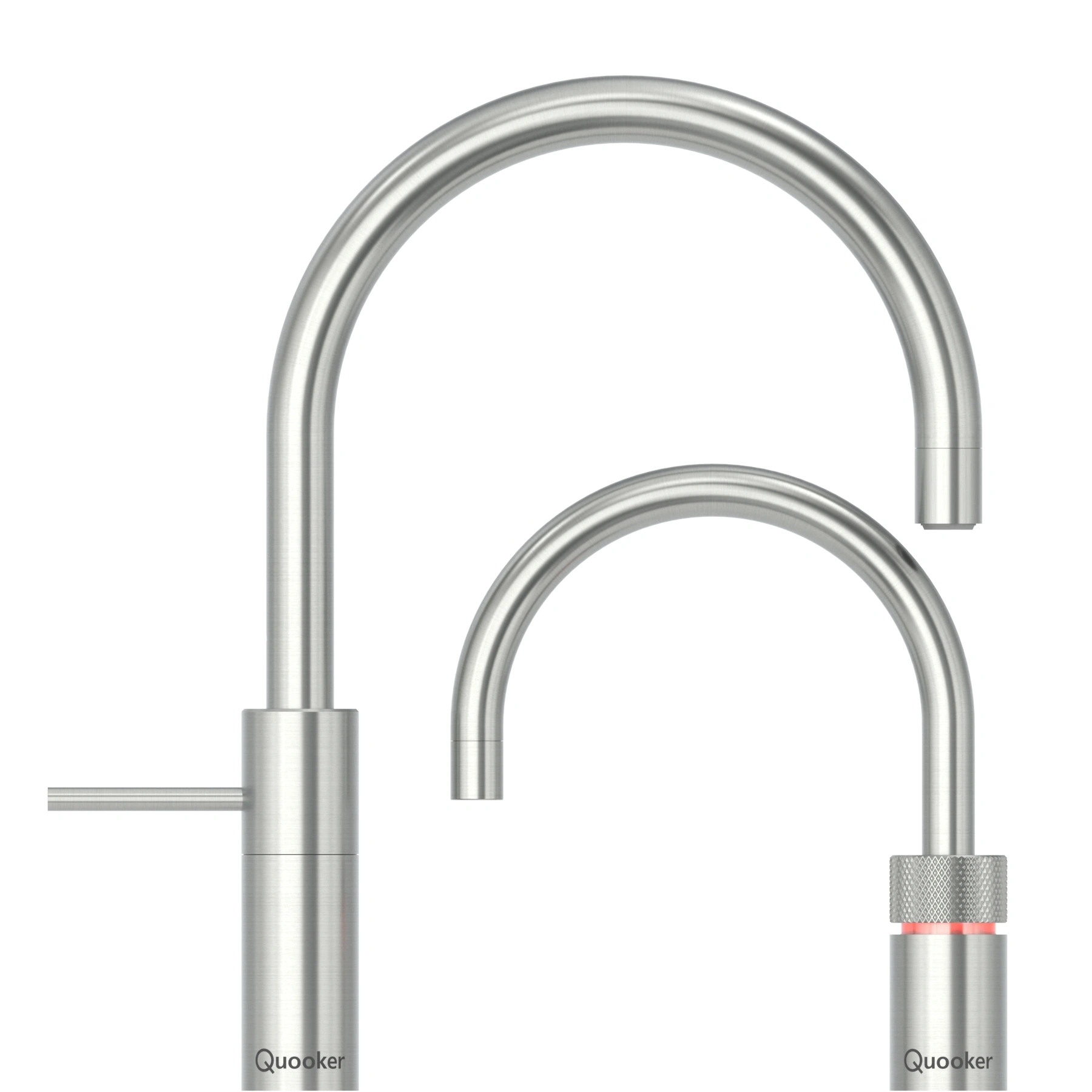 Quooker Nordic Twintaps Round 22NRRVSTTCUBE Kochend Wasserhahn mit COMBI & CUBE Reservoir in Edelstahl
