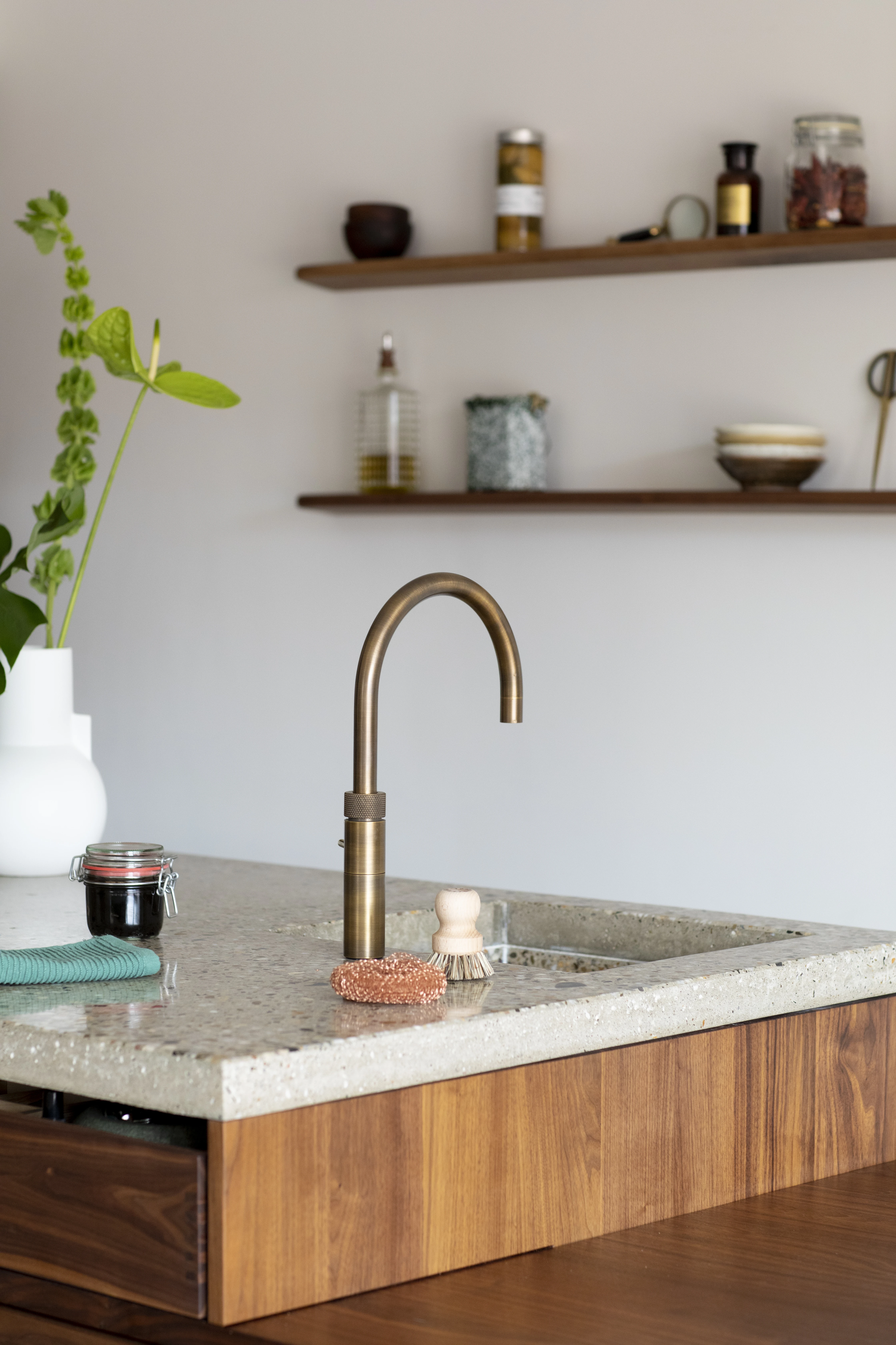 - Quooker zeichnet aus: einen tropfenförmigen, nicht massiven Wasserstrahl, der auf diese Art keine Verbrennungen verursacht