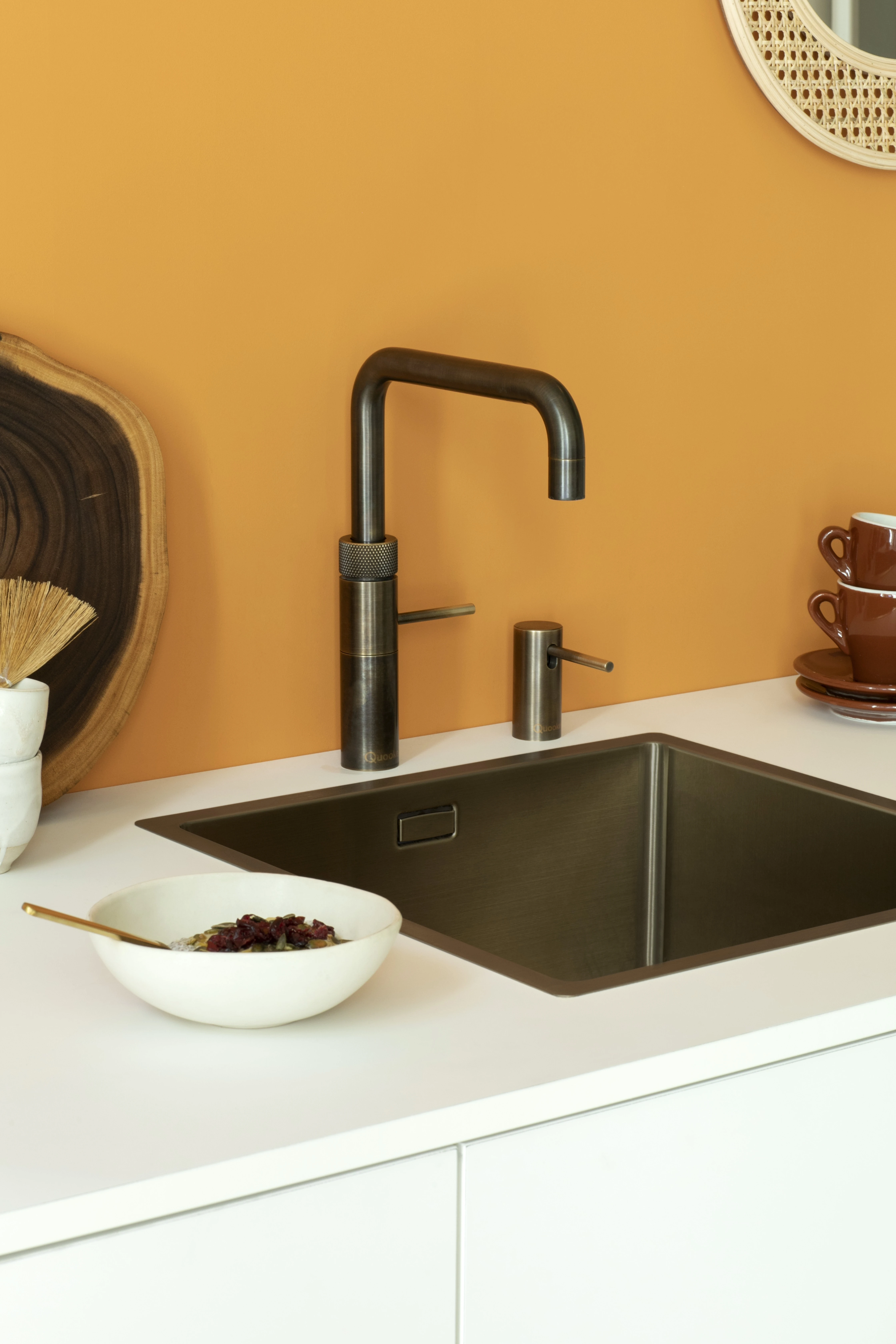 - Quooker bietet: einen kindersicheren Druck-Dreh-Bedienknopf sowie einen doppelwandigen Auslauf, der nicht zu heiß zum Anfassen wird