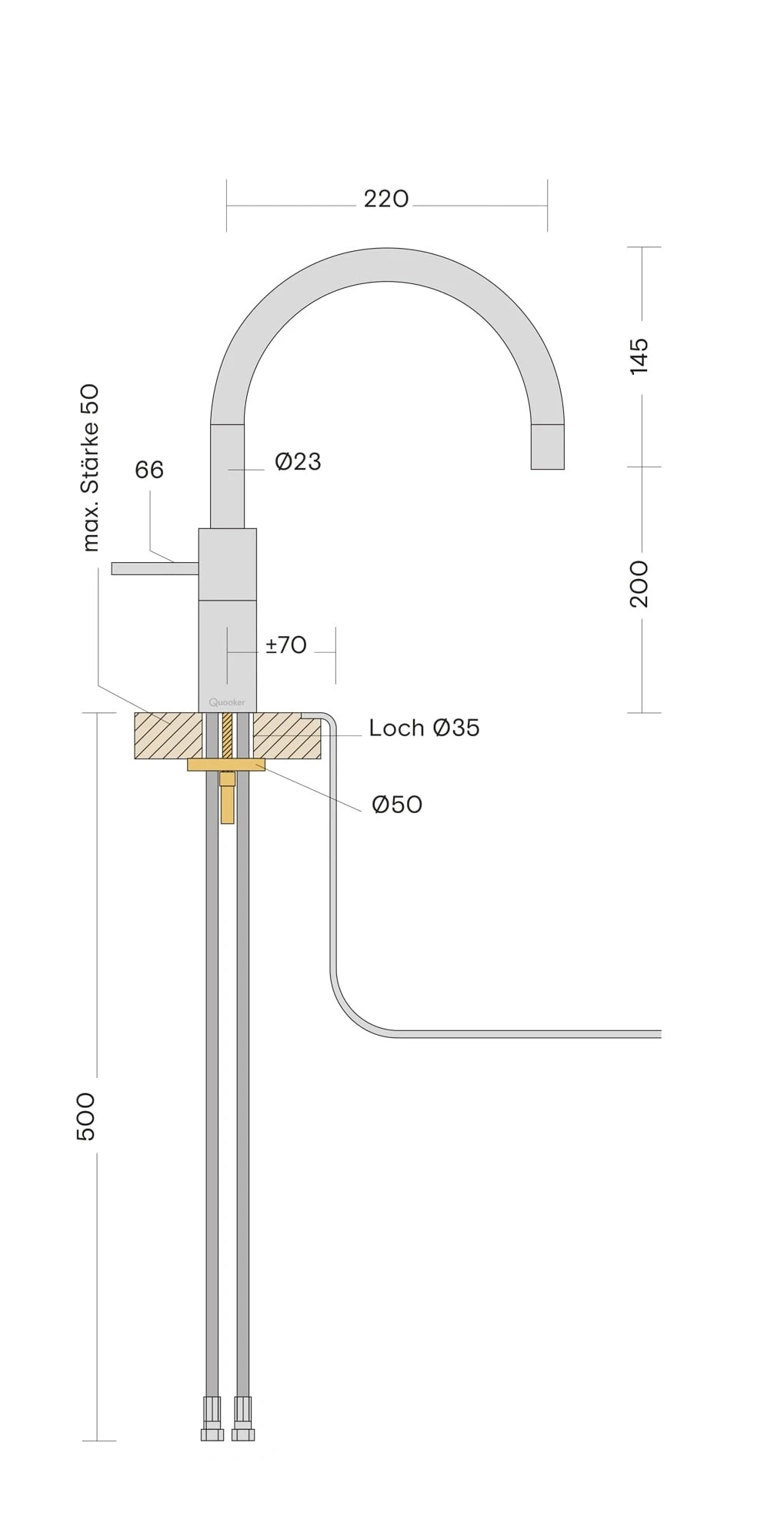 - Quooker bietet: einen höhenverstellbaren Hahn, dessen Auslauf genau über das zu befüllende Behältnis gedreht werden kann, wodurch er nicht spritzt