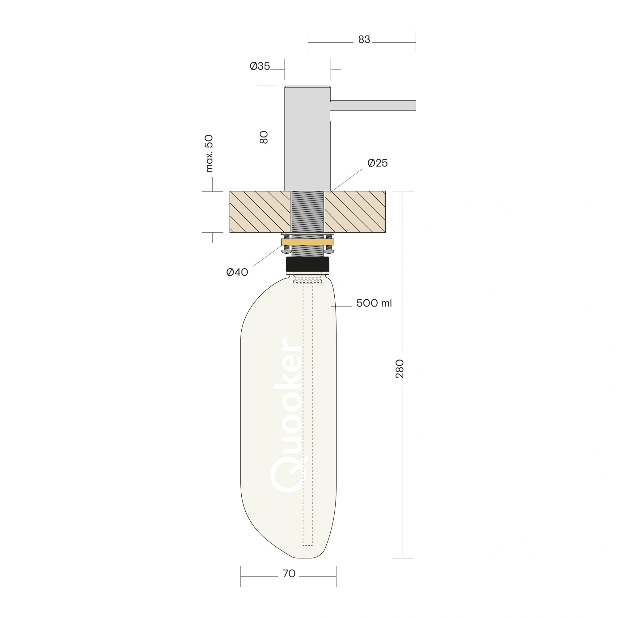 Er ist das perfekte ergänzende Zubehör für den Quooker Kochend Wasserhahn - der Quooker Nordic Seifenspender SEIFRVS in Voll-Edelstahl. Mit seinem schlichten und modernen Design fügt er sich ideal in die Küche ein. Außerdem kann er einhändig bedient werden und lässt sich von oben mit Seife befüllen. Weitere Farben sind erhältlich: Gold, Schwarz, Messing Patina und verchromt glänzend.