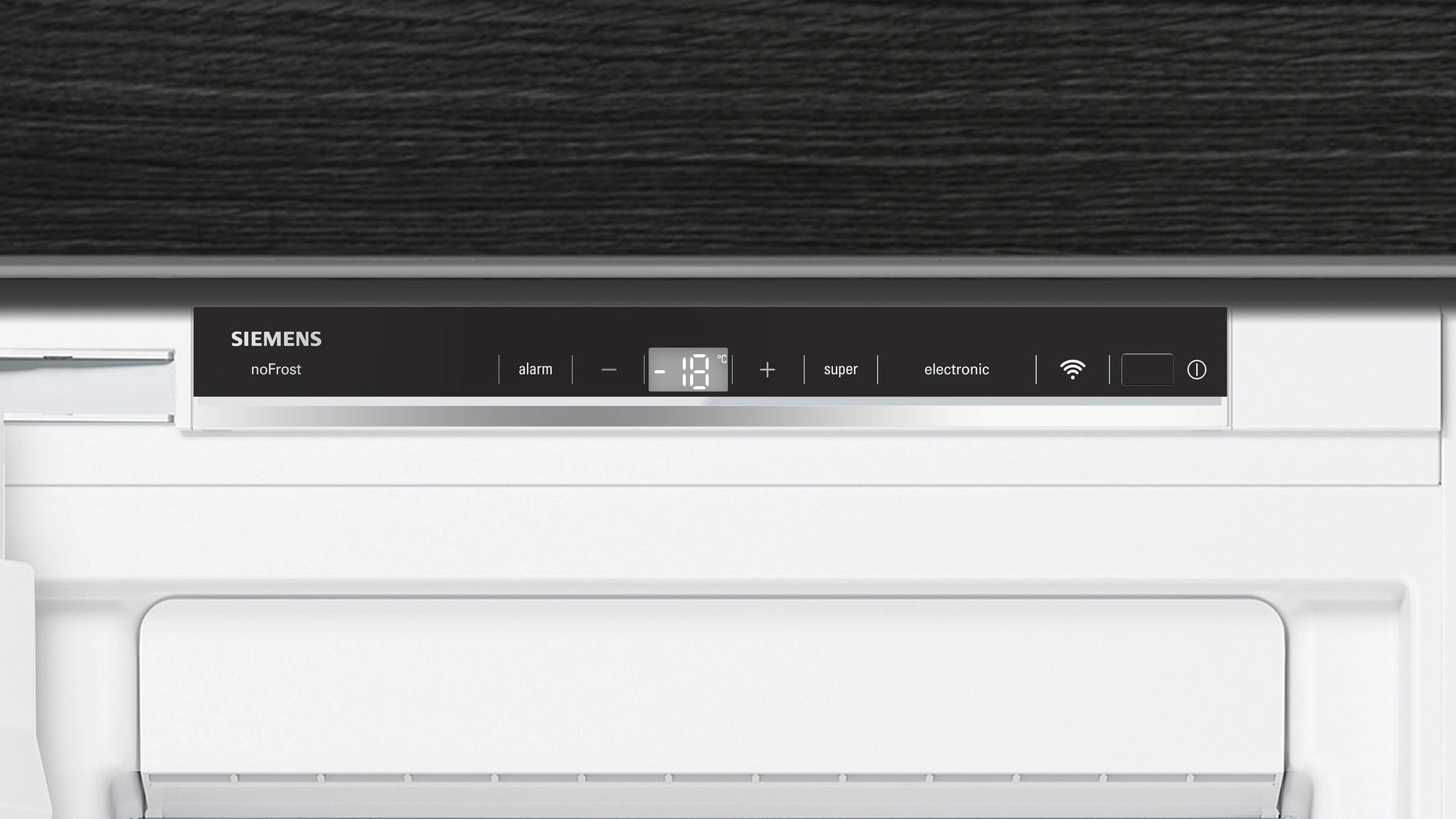 Der Siemens GI81NHNE0 iQ700 Gefrierschrank mit NoFrost ist ein smarter Einbaugefrierschrank aus der studioLine, der sich über openAssist einfach über Sprache öffnen lässt. Auf 212 Liter bietet er viel Raum zum Gefrieren von Lebensmitteln. Die Schubladen und Glasablagen lassen sich mit varioZone flexibel anordnen und schaffen Platz für Großes zum Einfrieren. Die Tür schließt soft und automatisch, wenn der Öffnungswinkel nur noch 20° beträgt.