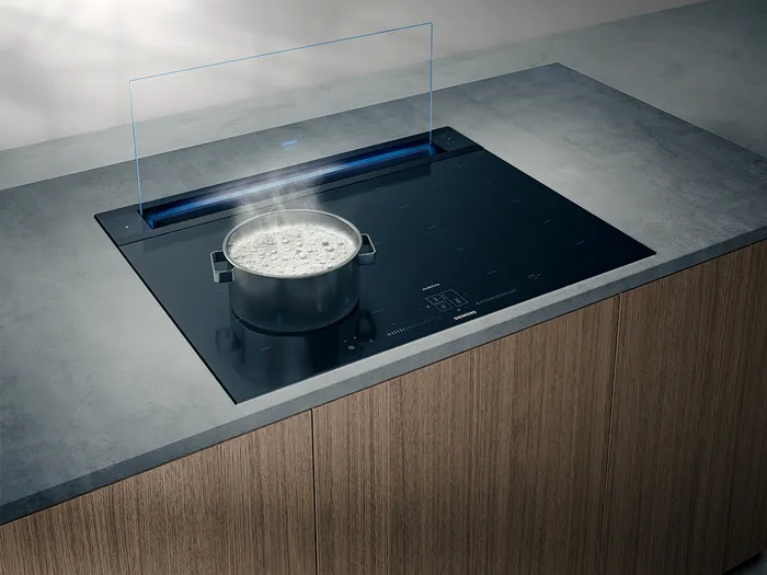 The studioLine downdraft extractors eliminate steam and odors directly at the source: at the cooktop. This allows you to enjoy even more freedom and space while cooking, along with a generous design for a modern kitchen aesthetic.