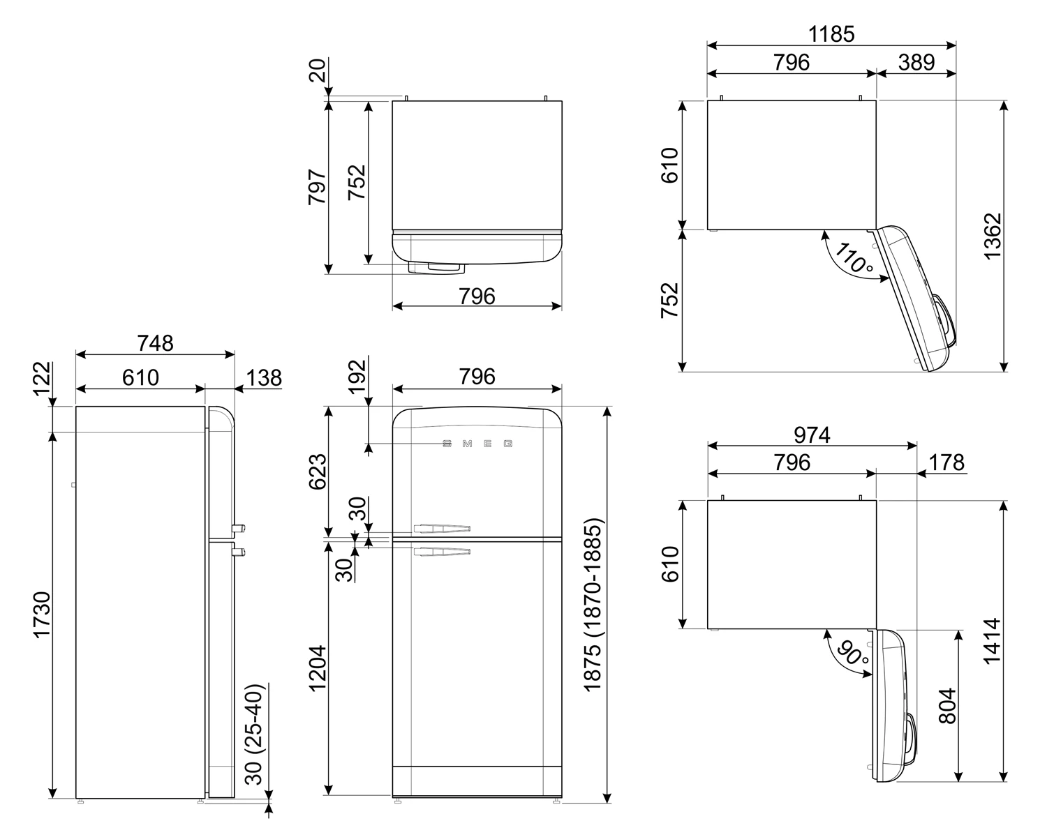 50's Style ist eine Retro Design-Serie von Smeg, die sich durch kurvenreiche Formen und lebhafte Farben auszeichnet. Espressomaschine, Küchenmaschine, Kühlschrank, Dunstabzugshaube, Mixer, Wasserkocher und Toaster erscheinen im Stil der 50er Jahre. Smeg 50's Style Kühlschränke sind Made in Italy und verkörpern italienisches Design plus technische Spitzenleistung.