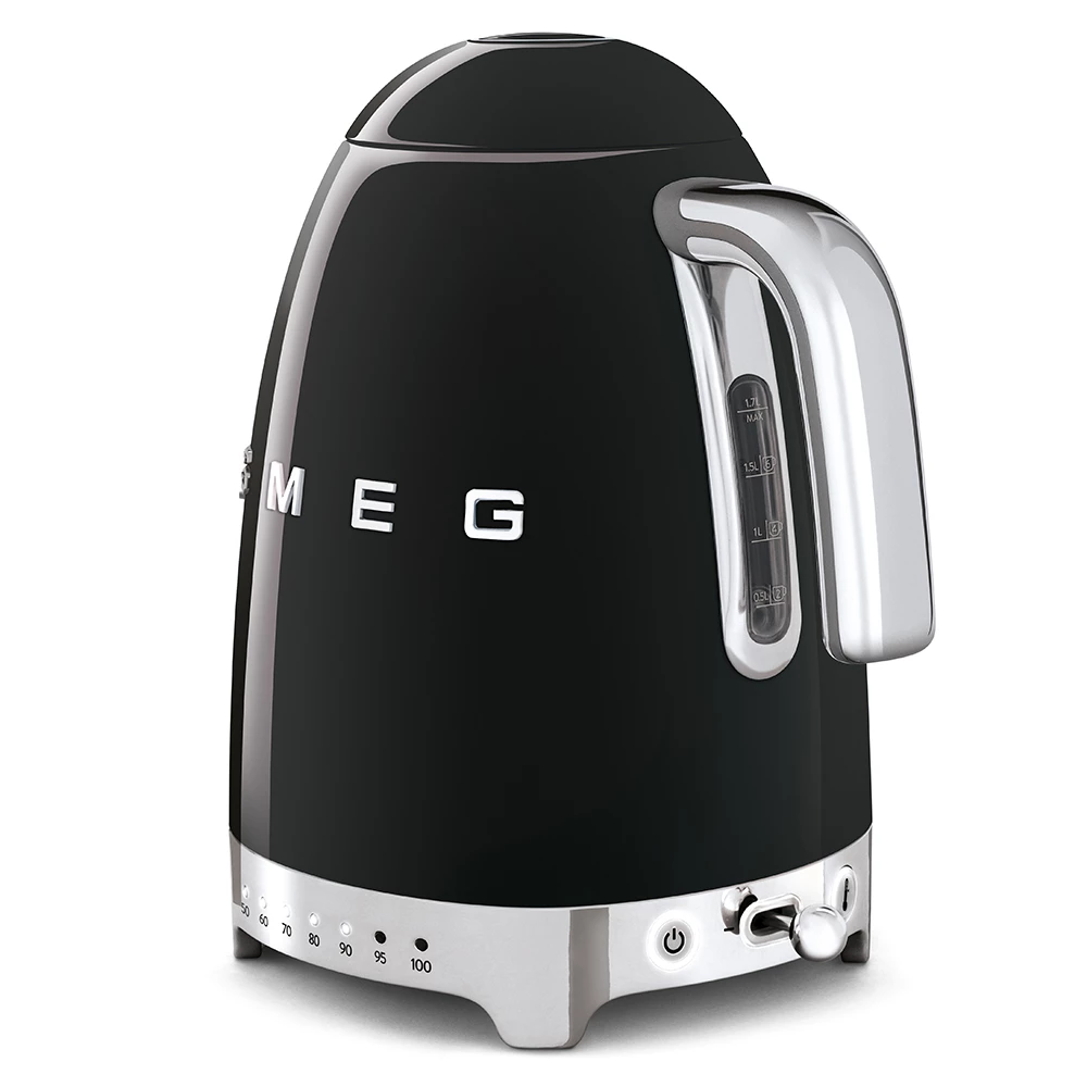 Smeg KLF04BLEU Retro Wasserkocher mit 1,7 Liter & 7 Temperaturstufen in Schwarz