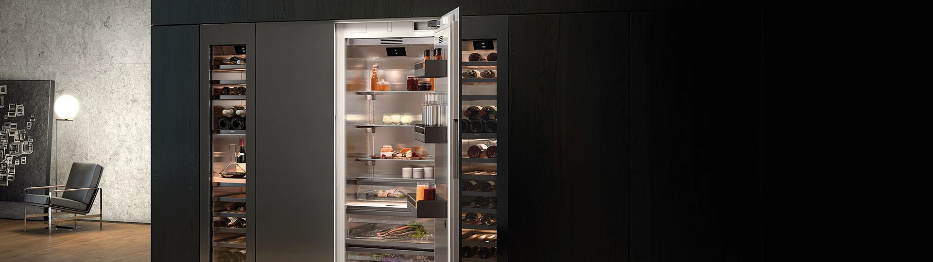 Unser breites Sortiment an Kühlgeräten fügt sich harmonisch in jede Küchenlandschaft ein und hält für ambitionierte Köche stets einen Vorrat an frischesten Zutaten bereit. Unsere flexiblen und vielseitigen Kühlgeräte wurden für einen schonenden und intelligenten Umgang mit Ihren kostbaren Lebensmitteln konzipiert. Die eindrucksvollen hocheffizienten Kühlgeräte, Gefriergeräte und Kühl-/Gefrierkombinationen sind mit separaten Klimazonen und Präzisionstechnik für professionelle Kühlleistung ausgestattet.