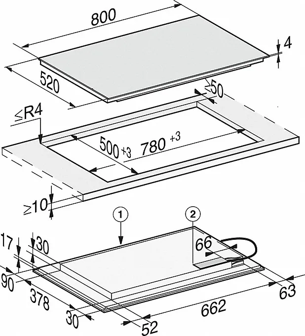 - In 800 mm Breite für flächenbündigen oder aufliegenden Einbau