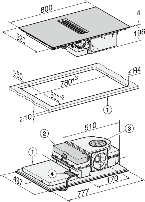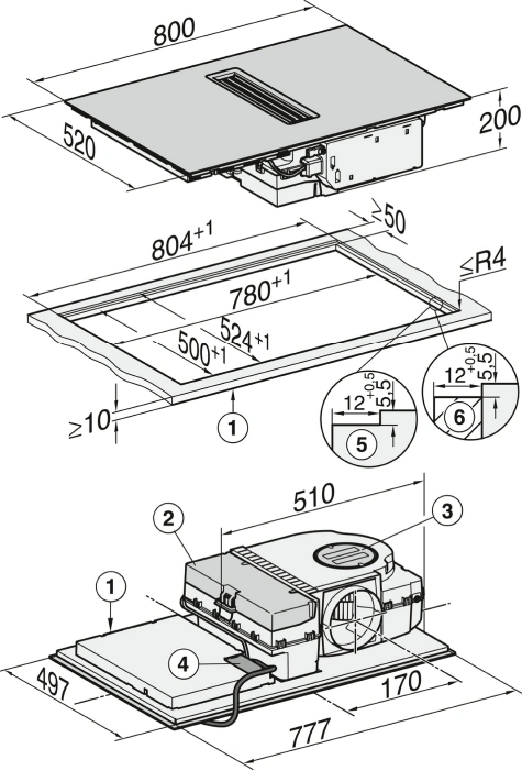 Rahmenloses Miele KMDA 7473 FL-A Induktionskochfeld mit Dunstabzug im Abluft-Betrieb