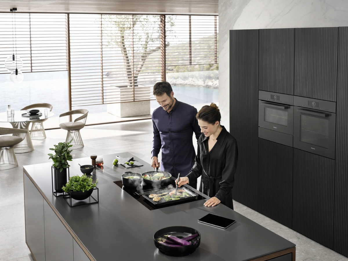 Das Miele KMDA 7473 FR-A Induktionskochfeld mit integriertem Dunstabzug ist die perfekte 2-in-1 Lösung für die Küche. Ein Kochfeld mit Induktion, das einen praktischen Abluft Dunstabzug in der Mitte zwischen zwei Flex-Induktion-Kochzonen integriert hat. Das TwoInOne Kochfeld wird rahmenlos in die Arbeitsplatte eingebaut und über ComfortSelect Plus bedient. Zudem lässt sich der Kochfeldabzug mit Con@ctivity automatisch und smart steuern.