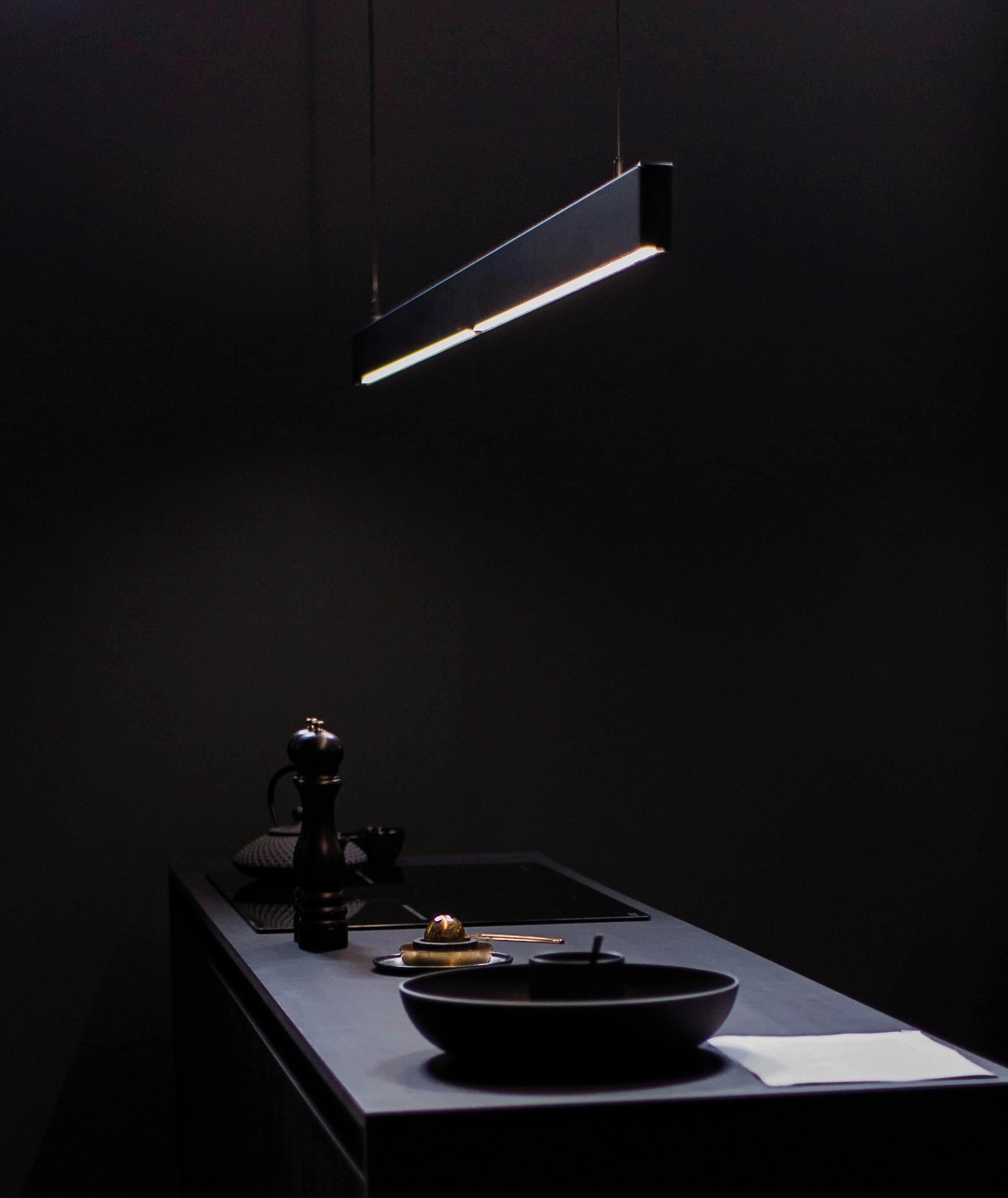 Ob als schwarze Pendelleuchte für die Kochinsel oder als Lampe über dem Küchentisch. Die Novy Pendant ist eine schöne Leuchte für die Küche mit 180 cm Breite und intelligentem Licht. Eine einfache Wischbewegung genügt und schon kann man das LED-Licht ein- oder ausschalten, in der Intensität und der Lichtfarbe ändern. Als Designleuchte ist die Novy Pendant dann auch noch ein schöner Eye-Catcher.