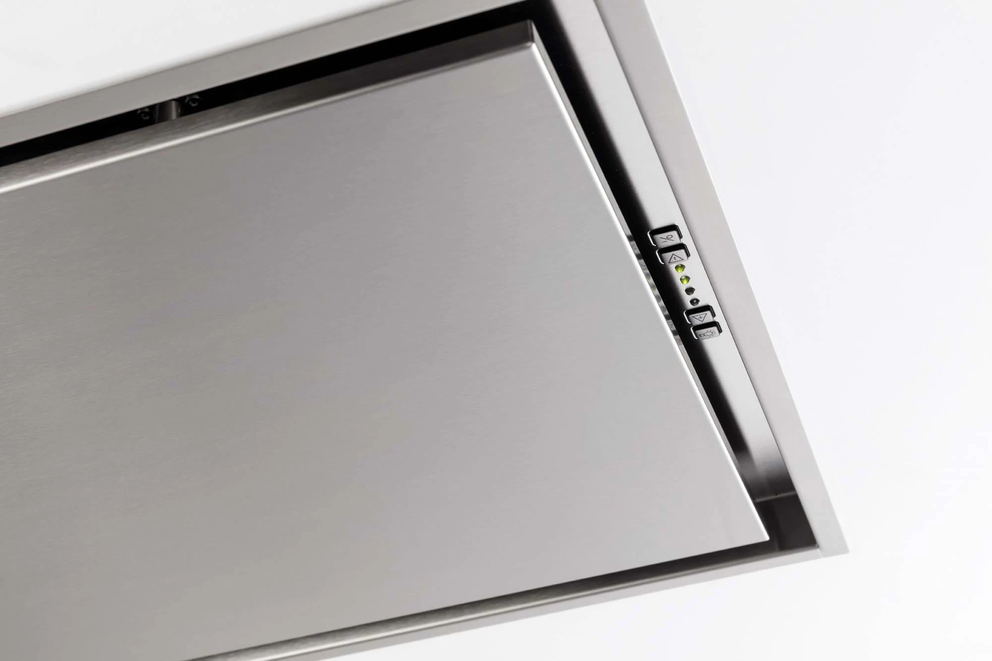 Die Novy Pureline 6843 ist eine Deckenhaube in 120 cm Edelstahl. Sie besitzt einen Cubic Motor, der drehbar und abnehmbar ist und dadurch flexible Installationsmöglichkeiten ermöglicht, z.B. extern im Gebäude. Für mehr Flexibilität sorgt auch das Fehlen von Licht, sodass eine eigene Beleuchtung in der Küche geplant werden kann. Bedient wird die Novy Abzugshaube über Tasten oder Fernsteuerung.