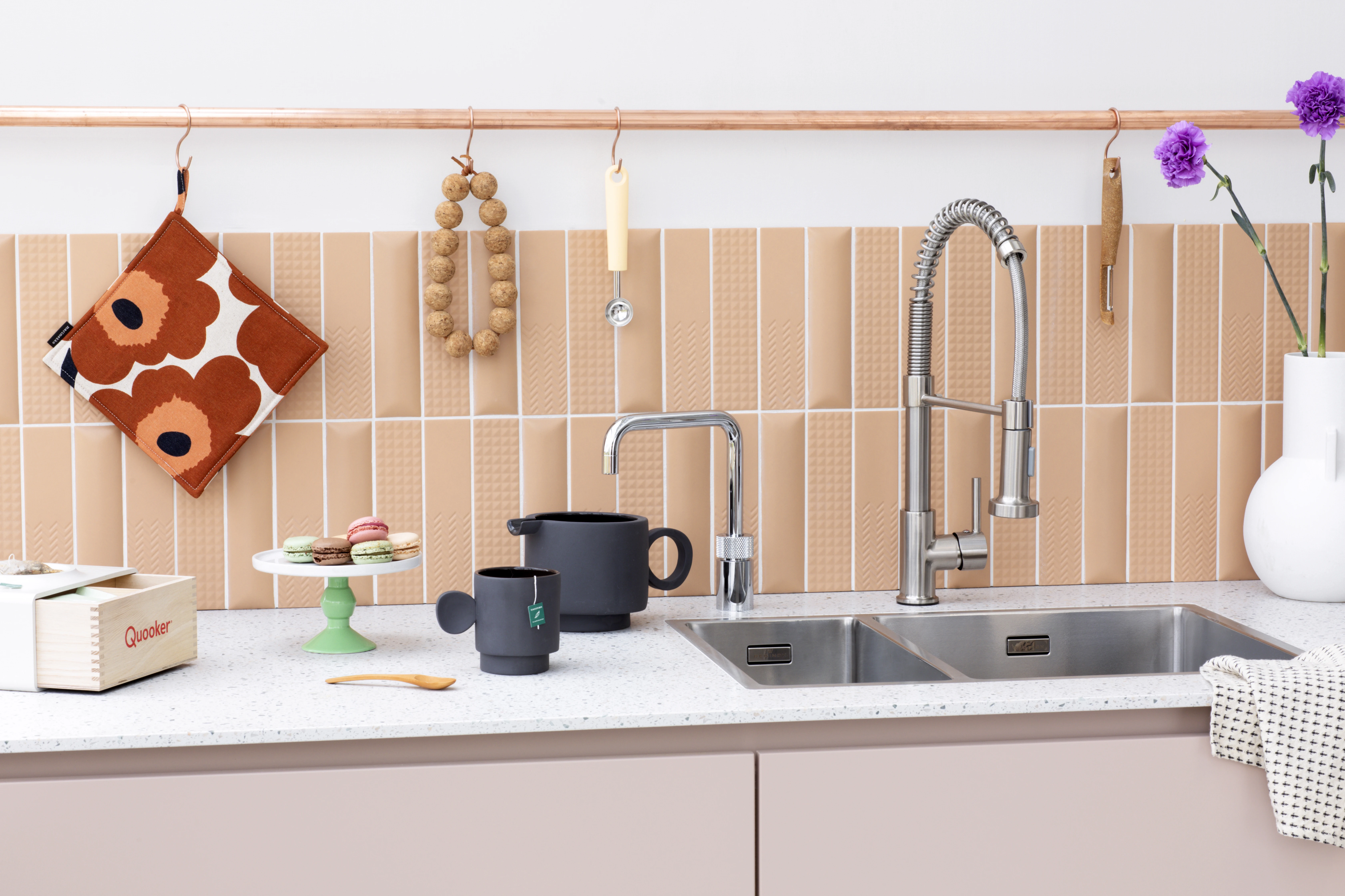 - Quooker bietet: einen höhenverstellbaren Hahn, dessen Auslauf genau über das zu befüllende Behältnis gedreht werden kann, wodurch er nicht spritzt