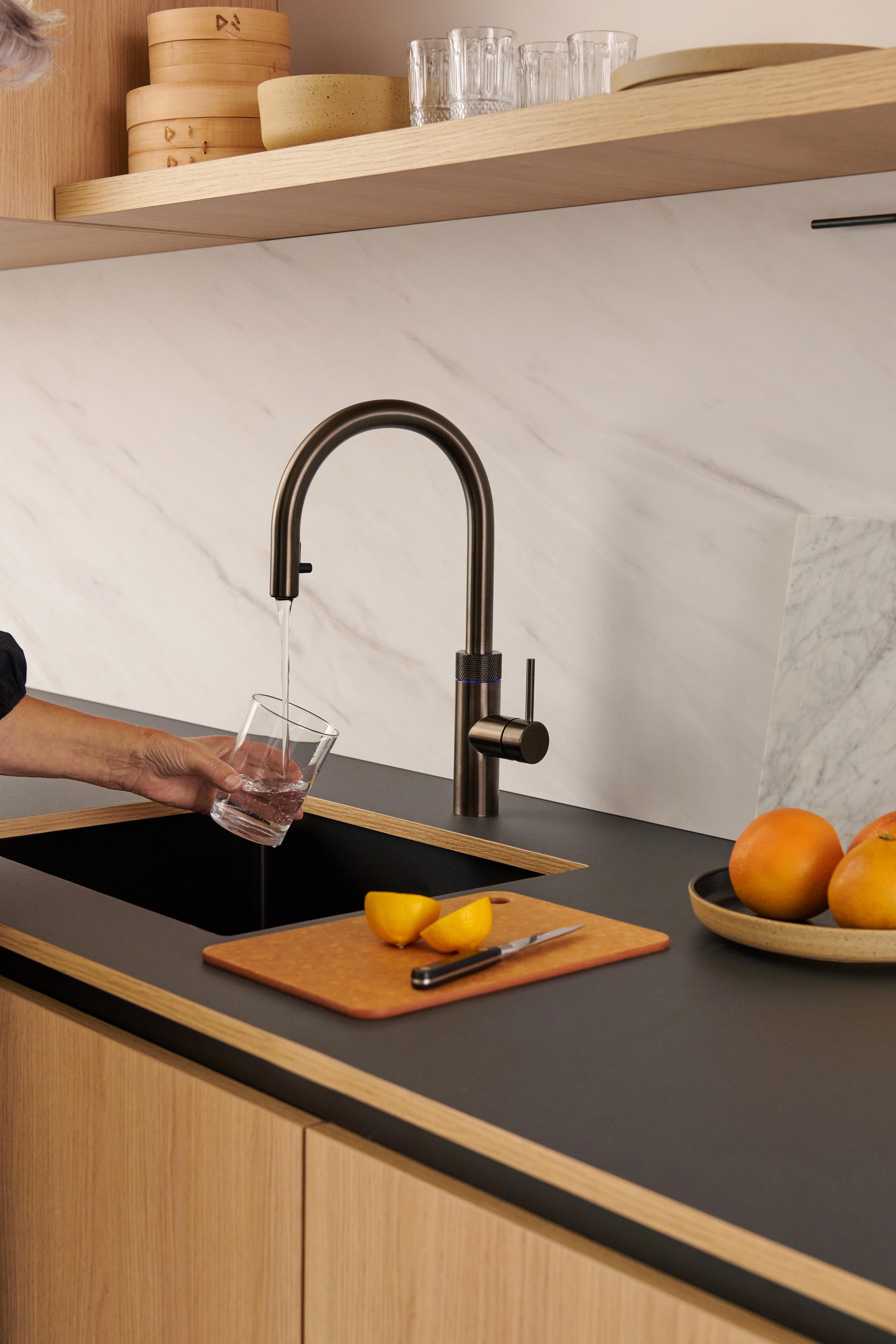 - Quooker zeichnet aus: einen tropfenförmigen, nicht massiven Wasserstrahl, der auf diese Art keine Verbrennungen verursacht