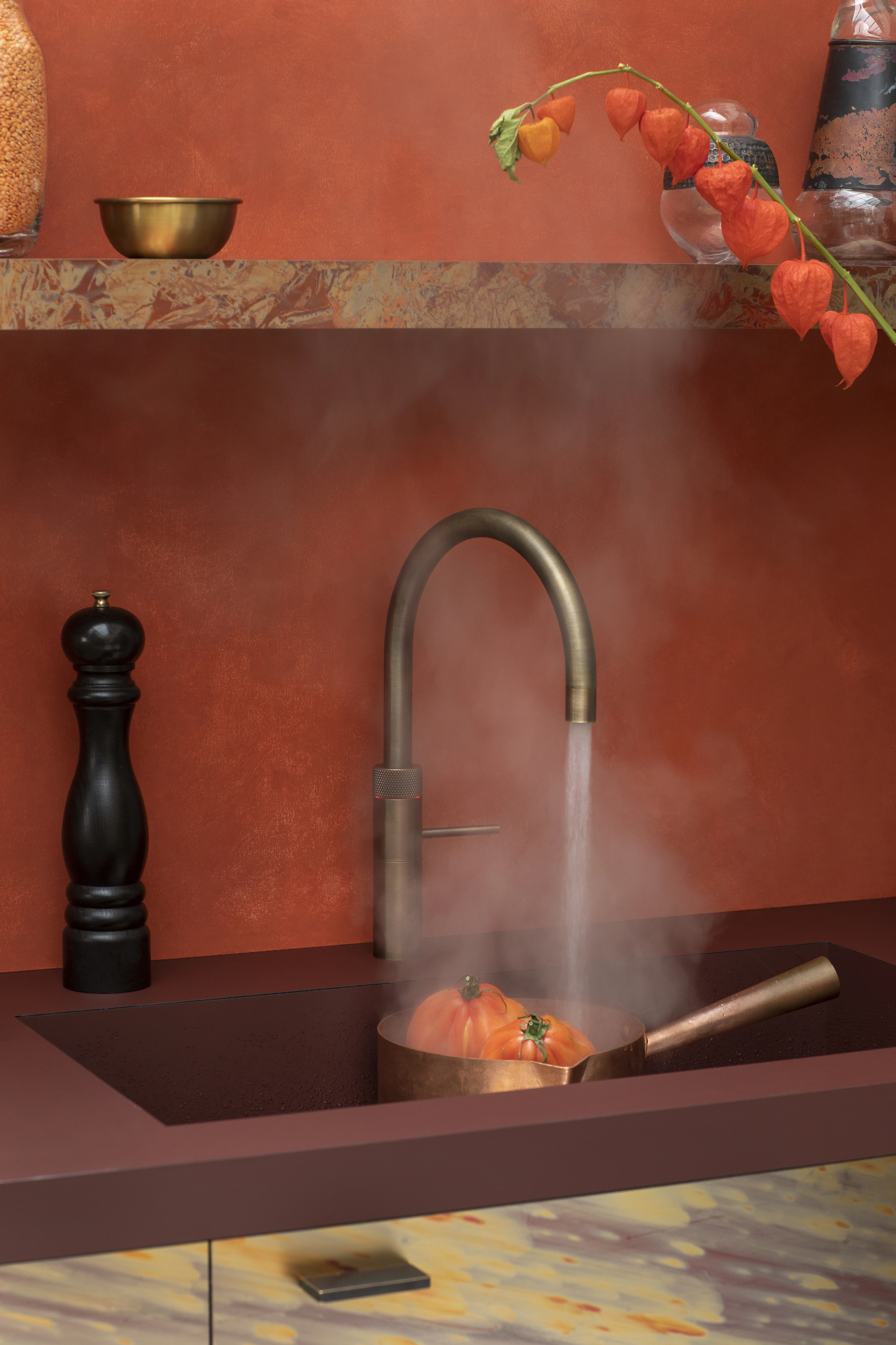 Quooker Classic Fusion Round 22+CFRPTNCUBE Kochend Wasserhahn mit COMBI+ & CUBE Reservoir in Messing Patina