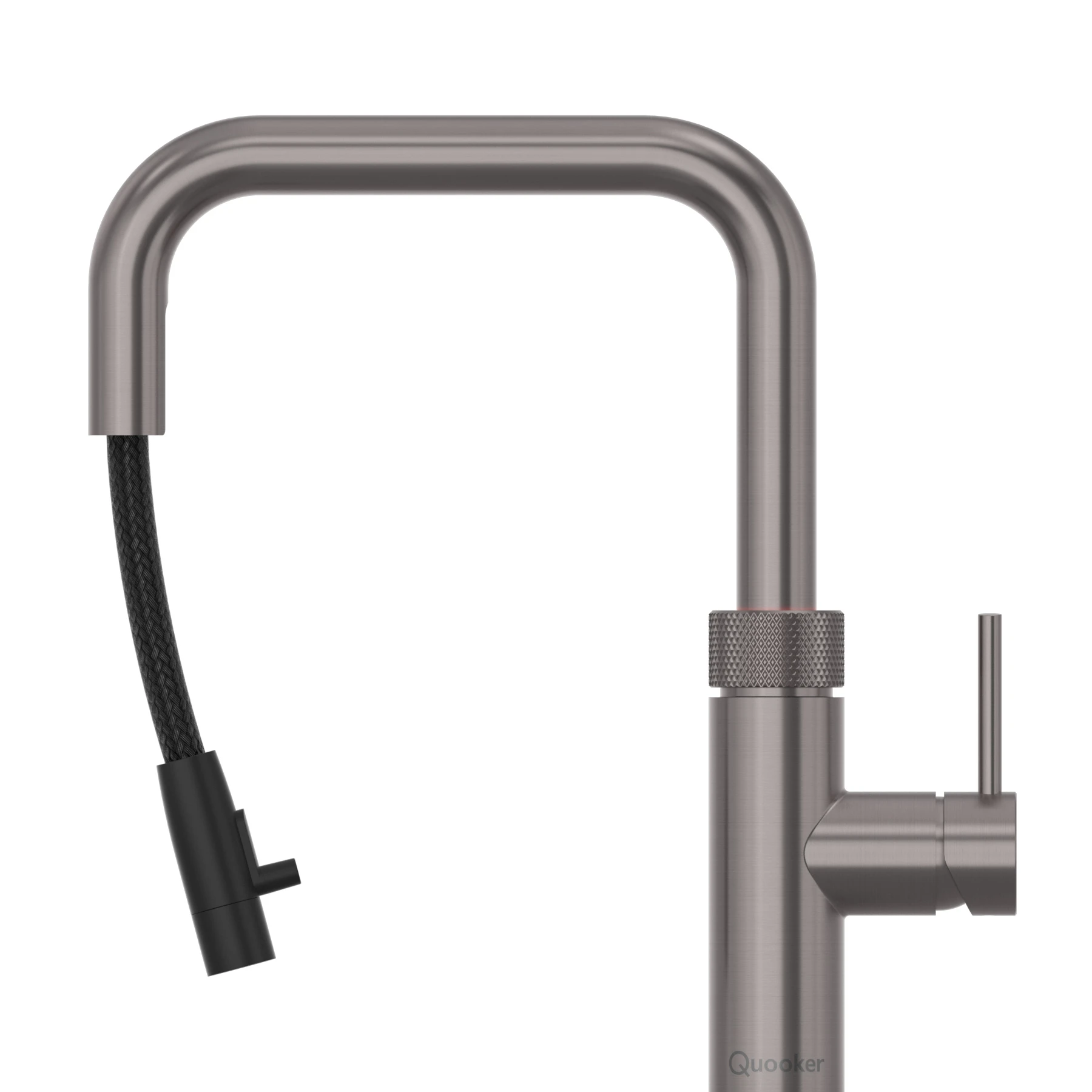 - Quooker bietet: einen kindersicheren Druck-Dreh-Bedienknopf sowie einen doppelwandigen Auslauf, der nicht zu heiß zum Anfassen wird